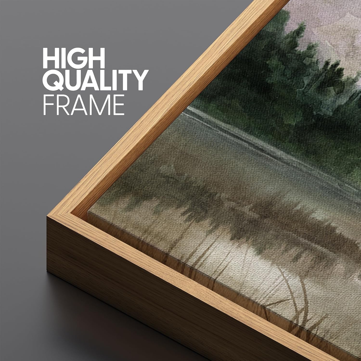 MUDECOR Extra Large Framed Canvas Print Wall Art Tranquil Lake Reflections Nature Landscape Illustrations Antique Retro Fine Art Illustrations Decorative Colorful for Bedroom - 60"x30"