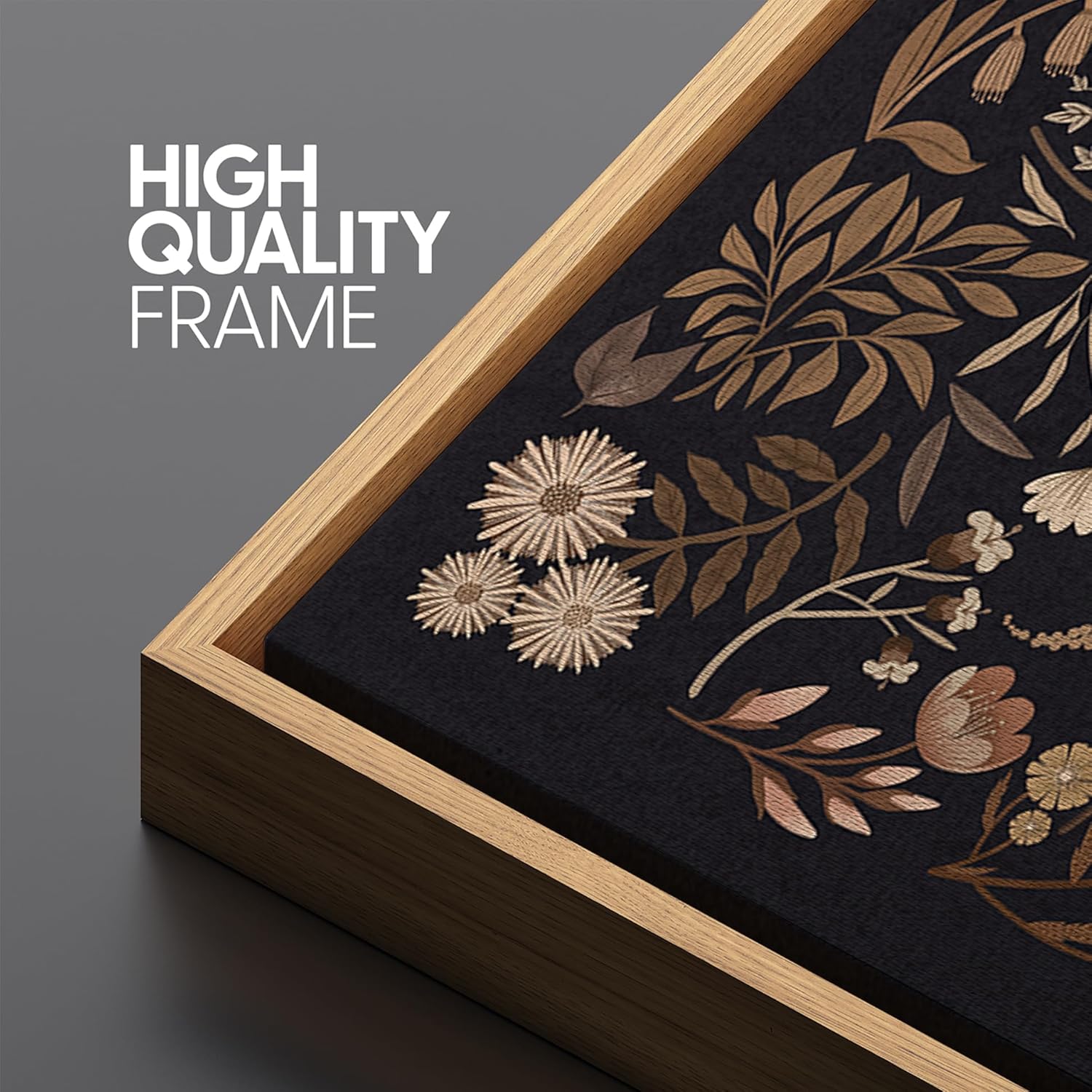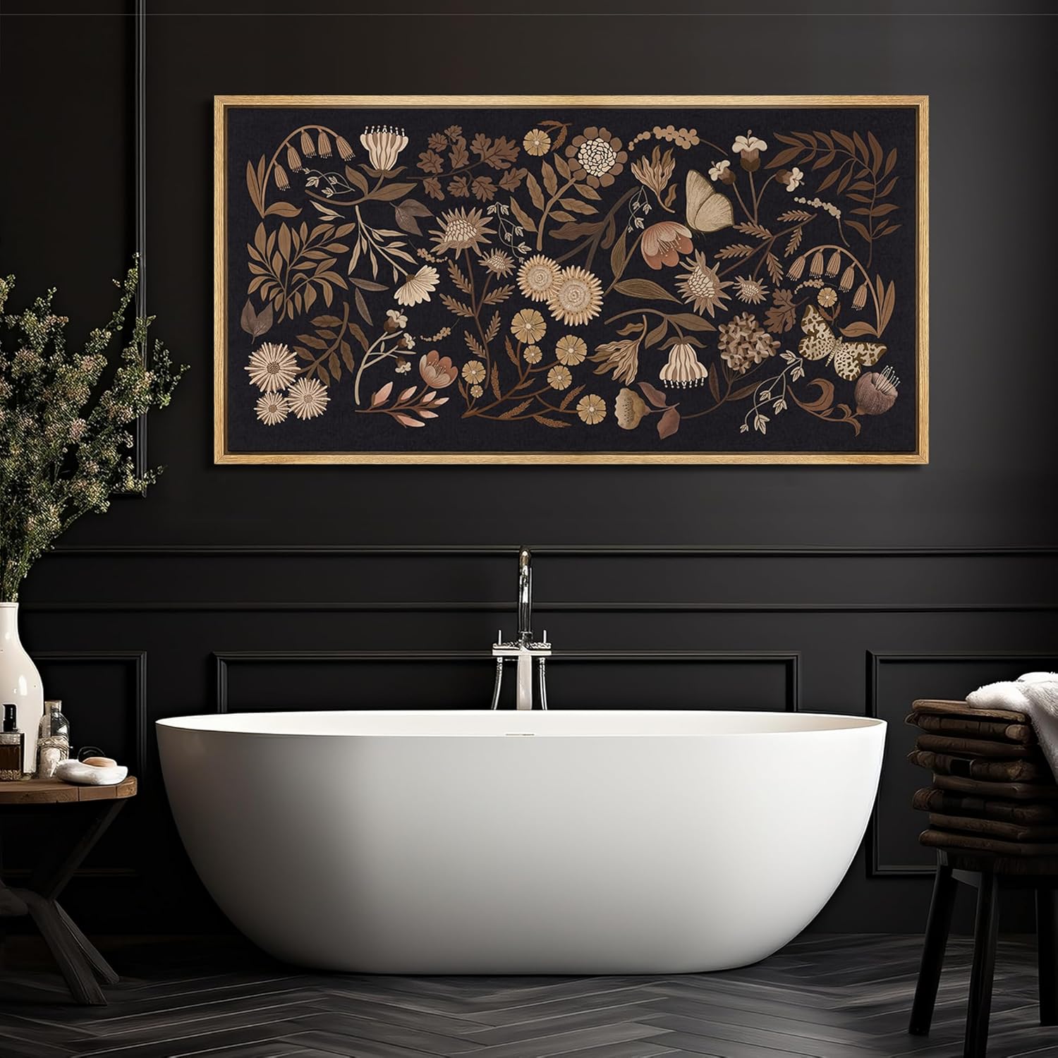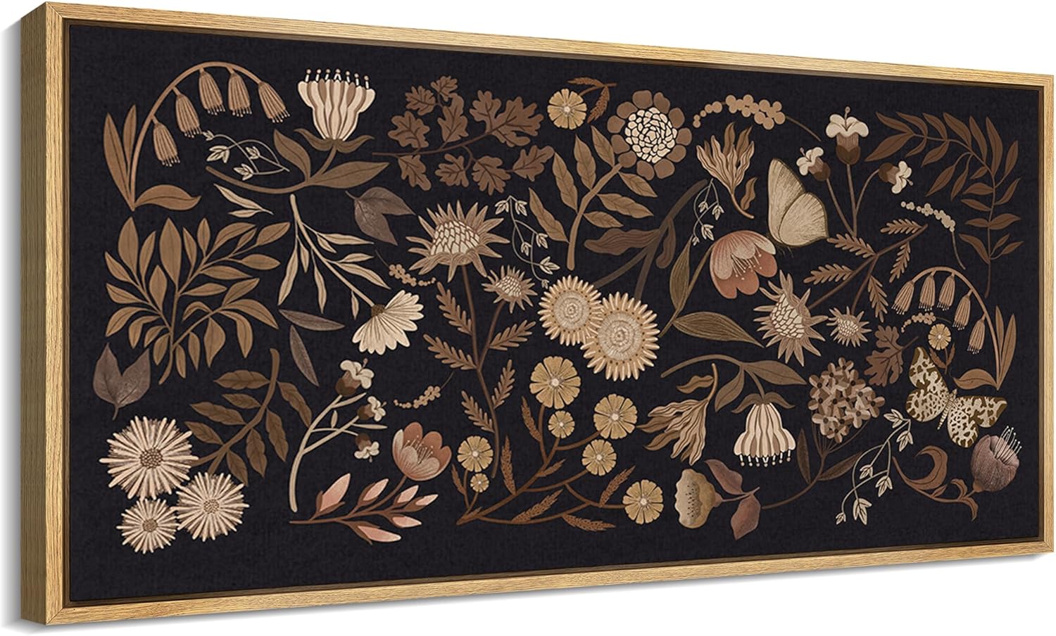 MUDECOR Extra Large Framed Canvas Print Wall Art Botanical Elegance Dark Floral Illustrations Antique Retro Fine Art Illustrations Decorative Colorful for Bedroom - 60"x30"