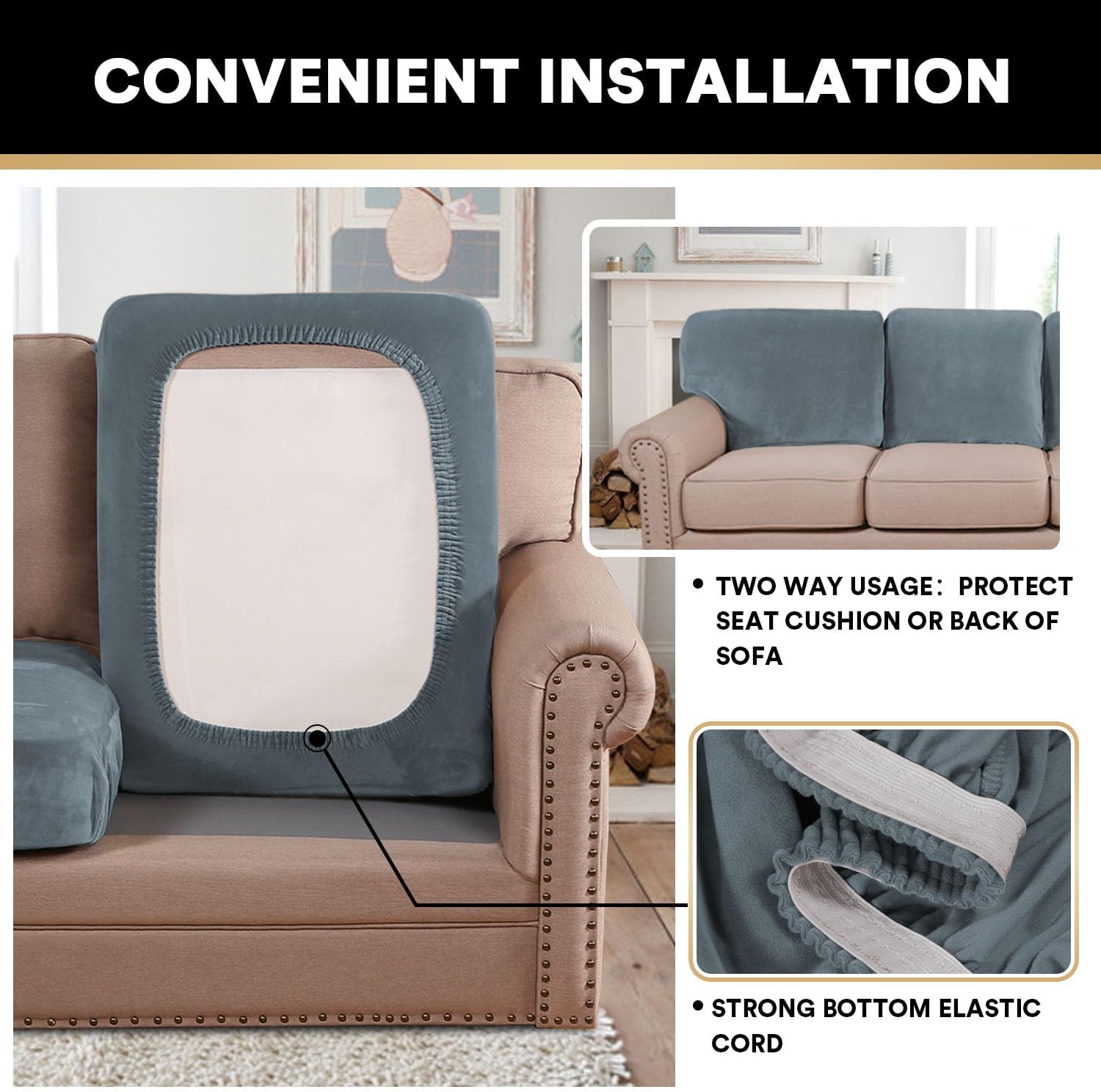 - Crafted from real Velvet Plush Fabric! soft, thick, cozy and durable, composition with 85% polyester 15% spandex. Embrace new tones and textures, change with the seasons, and express your personality. Quickly and easily update your existing furniture. Accommodates a variety of shapes, surely fit both of T-cushion and Box cushion