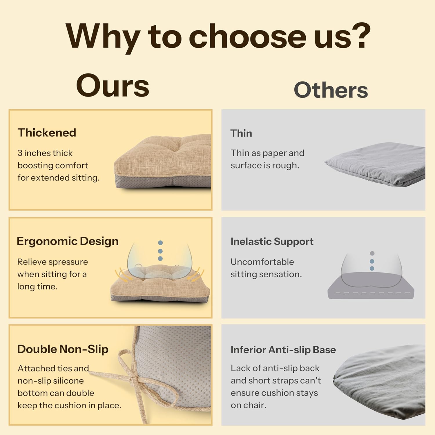 - Versatile Style: Whether you need extra support in the office or want to add a touch of style to your home, our seat cushions for dining chairs are the perfect solution. Use it in dining rooms, home offices, living rooms, bedroom, bars or even breakfast nooks to add comfort and a touch of elegance.