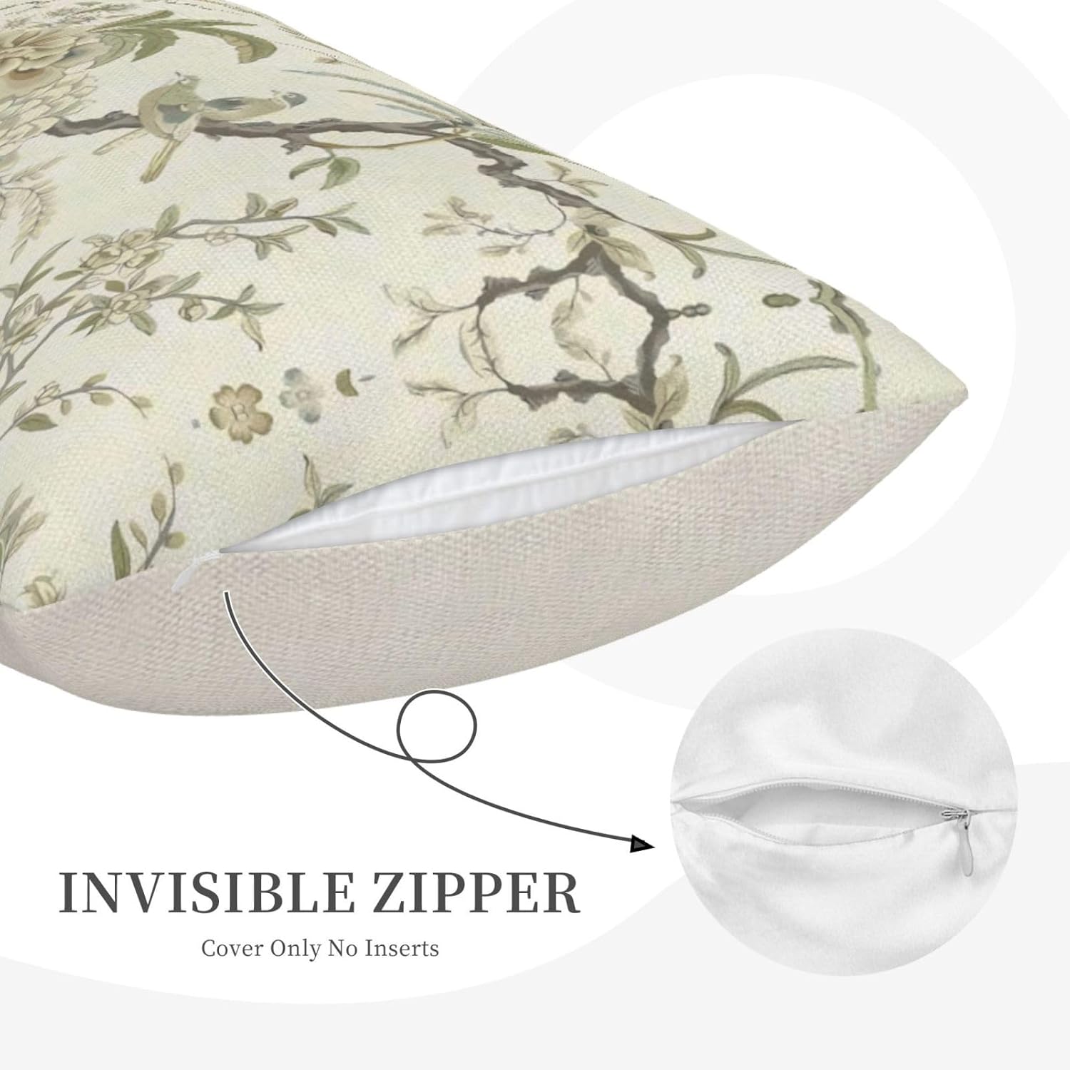 CXMEIFLY Spring Floral Birds Pillow Covers 12 x 20 Inch Set of 2 for Chinoiserie Flowers Decor Throw Pillows Sage Green Plant Outdoor Decorative Cushion Cases for Couch Bed Decorations