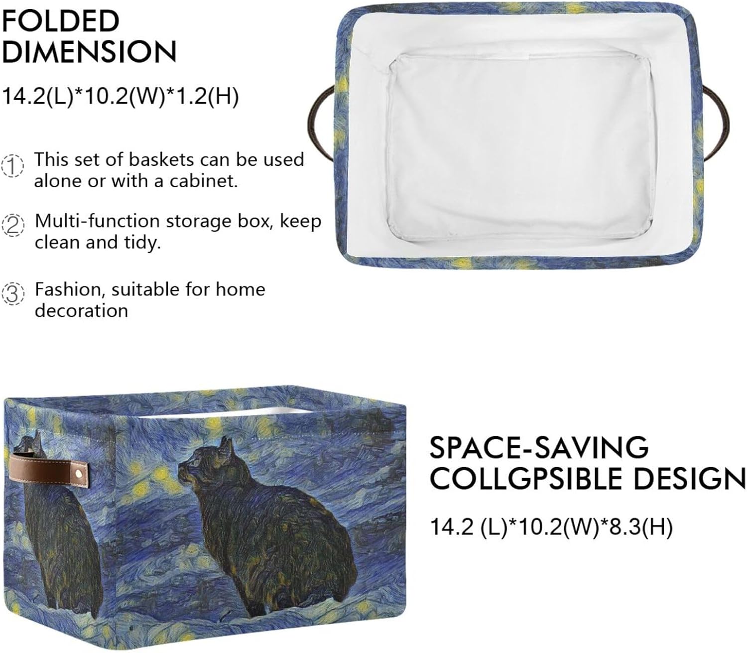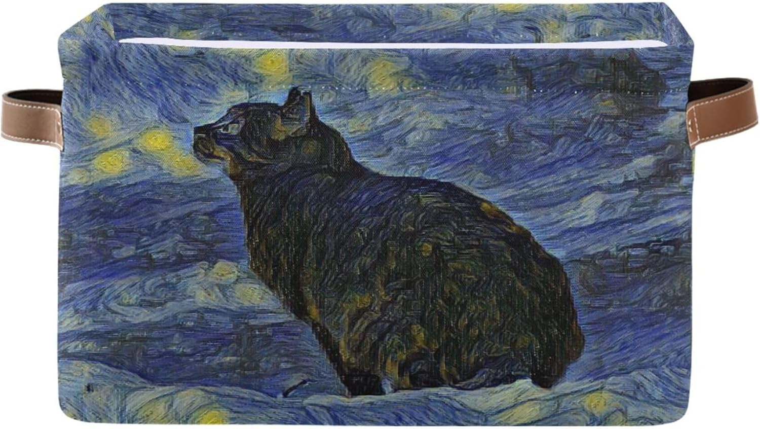 susiyo Storage Baskets for Shelves Organizer Baskets with Metal Frame Closet Storage Bins Fabric Bins Cubes with PU Handles for Organizing Shelf Nursery Toys 1 PACK,Black Cat