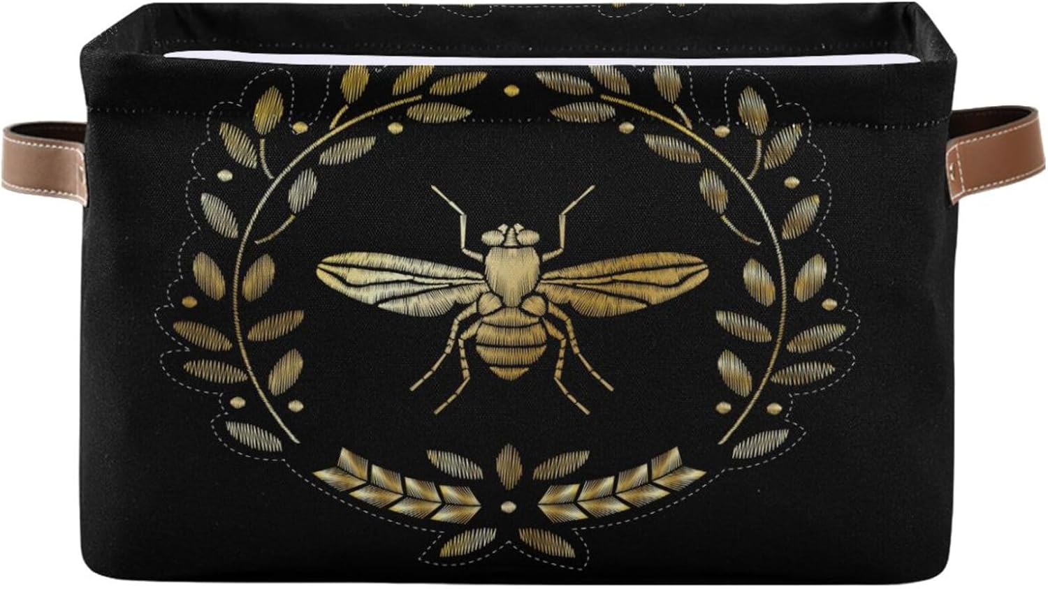 susiyo Storage Baskets for Shelves Organizer Baskets with Metal Frame Closet Storage Bins Fabric Bins Cubes with PU Handles for Organizing Shelf Nursery Toys 1 PACK,Gold Bee Floral