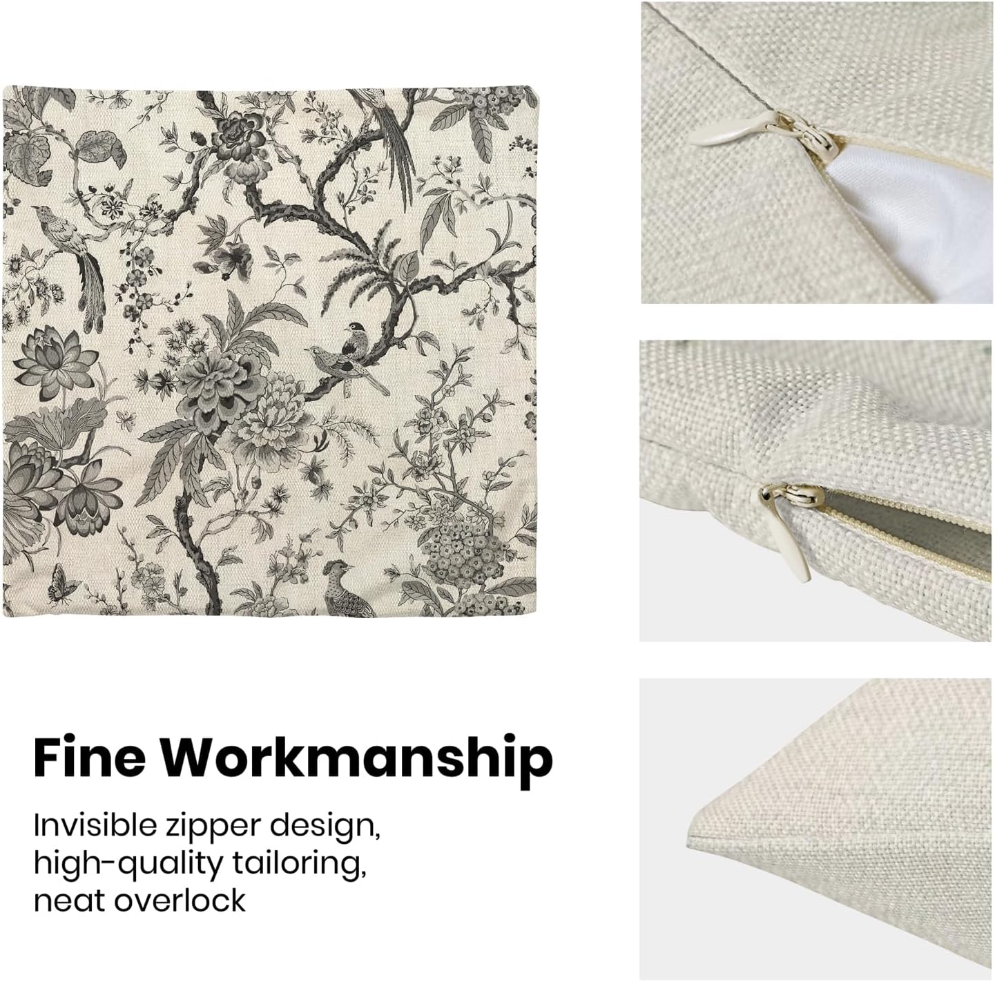 - 【Spring Pillow Covers】 Our Chinoiserie floral throw pillow covers 20x20 inch are made of excellent breathable polyester cotton fabric. The black and white floral decorative pillow covers is durable, soft and skin-friendly. The plant outdoor pillow covers adopt exquisite edging technology and four sides of our floral pillow covers are sewn firmly, which is not easy to open the line.