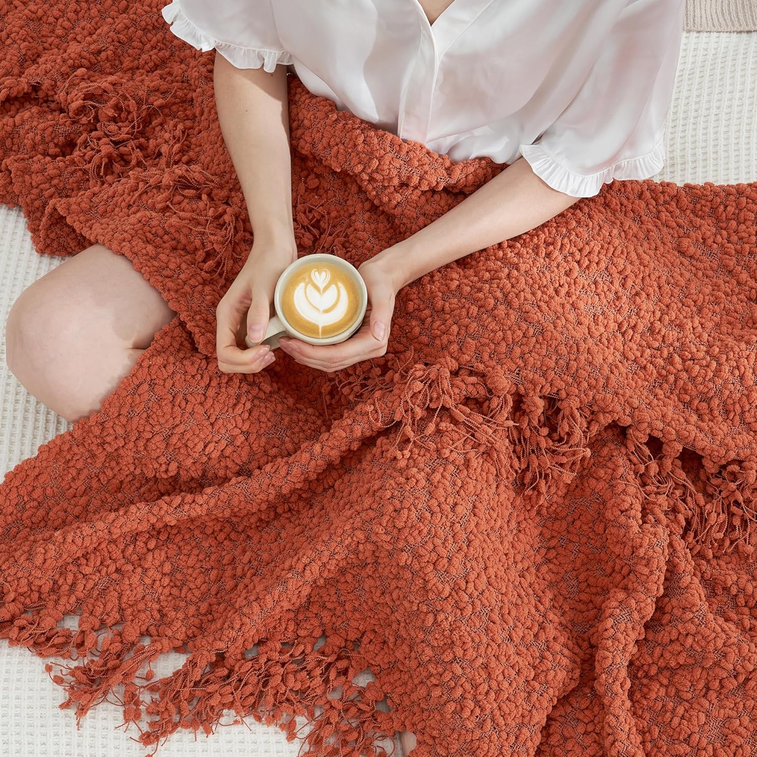 - PREMIUM DURABLE QUALITY: Woven from high-density yarns, this decorative throw resists shrinking, wrinkling, and fraying – even after repeated washes. The reinforced tufted details and hand-tied fringe stay intact for long-term use, while the lightweight build ensures easy draping.