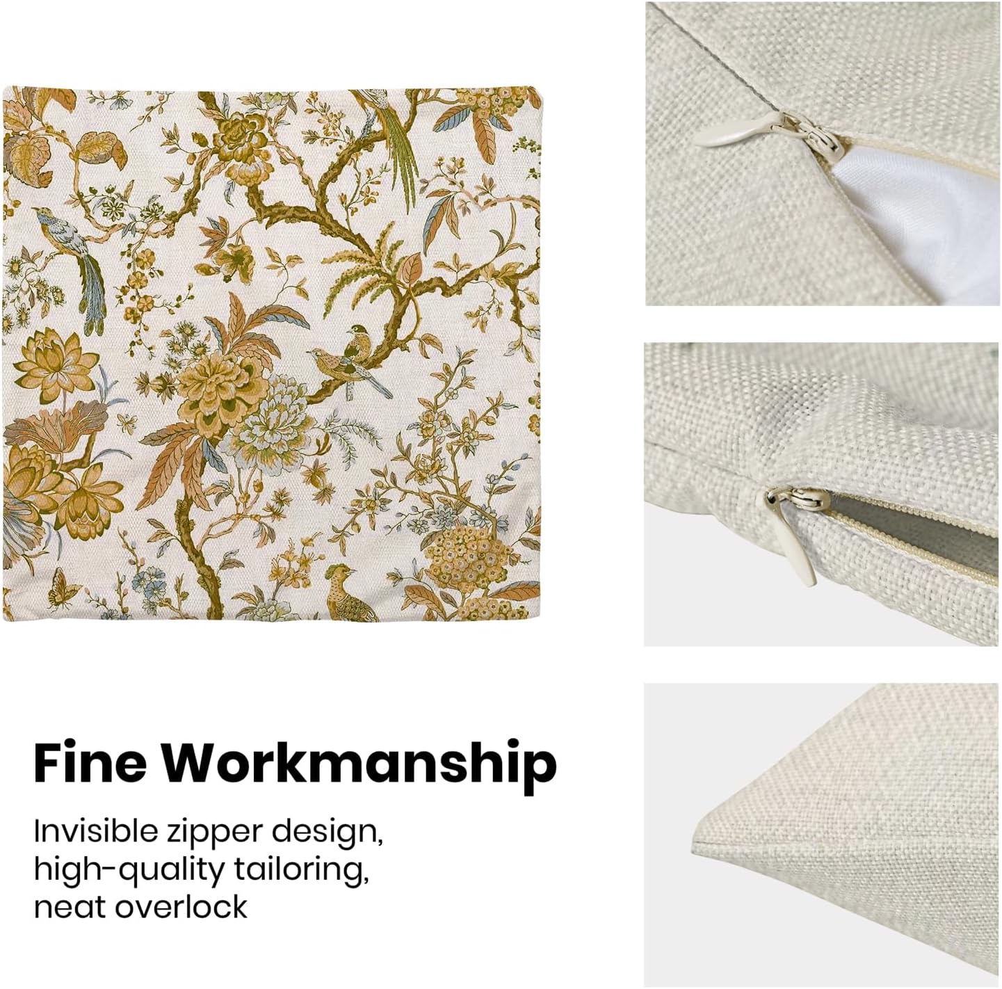 - 【Summer Pillow Covers】 Our Chinoiserie floral throw pillow covers 20x20 inch are made of excellent breathable polyester cotton fabric. The mustard yellow floral decorative pillow covers is durable, soft and skin-friendly. The plant outdoor pillow covers adopt exquisite edging technology and four sides of our spring pillow covers are sewn firmly, which is not easy to open the line.