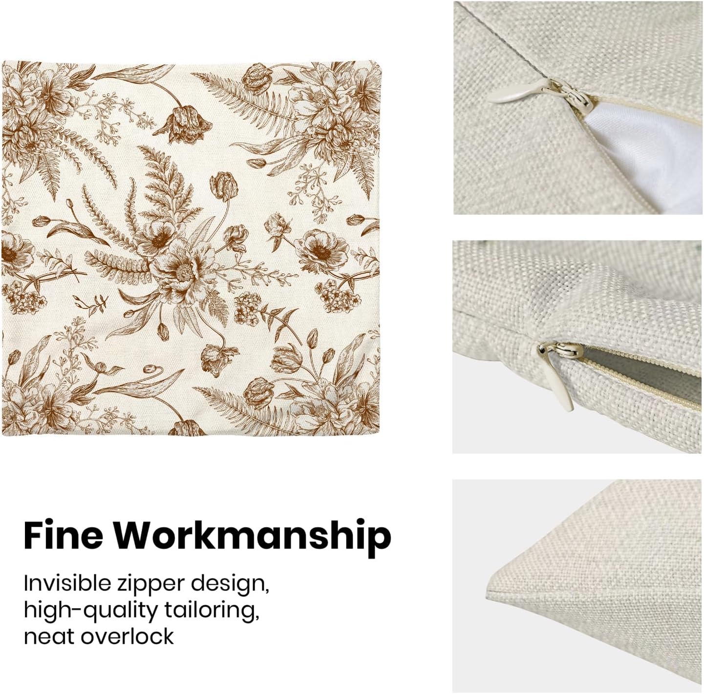 - 【Spring Pillow Covers】 Our Chinoiserie floral throw pillow covers 20x20 inch are made of excellent breathable polyester cotton fabric. The Brown and White floral decorative pillow covers is sturdy, soft and skin-friendly. The plant outdoor pillow covers adopt exquisite edging technology and four sides of our floral pillow covers are sewn firmly, which is not easy to open the line.