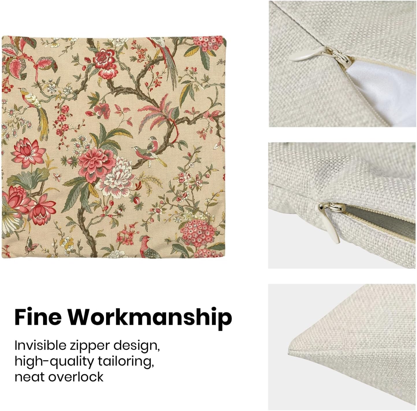 - 【Spring Pillow Covers】 Our Chinoiserie floral throw pillow covers 20x20 inch are made of excellent breathable polyester cotton fabric. The pink red floral decorative pillow covers is sturdy, soft and skin-friendly. The plant outdoor pillow covers adopt exquisite edging technology and four sides of our floral pillow covers are sewn firmly, which is not easy to open the line.