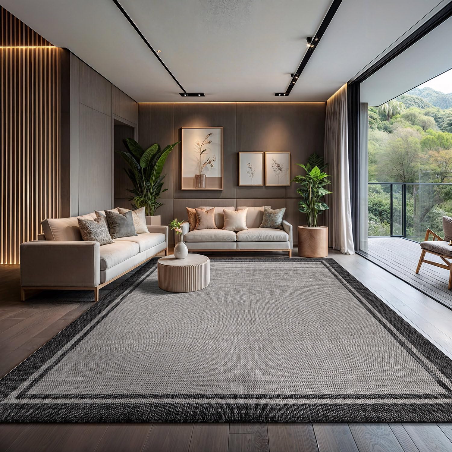 CAMILSON Indoor Outdoor Rug, 10x14 Bordered Gray Modern Area Rugs for Large Indoor and Outdoor Patios, Kitchen and Hallway Mats, Washable Porch Deck Outside Carpet (Bordered Grey, 10 x 14)