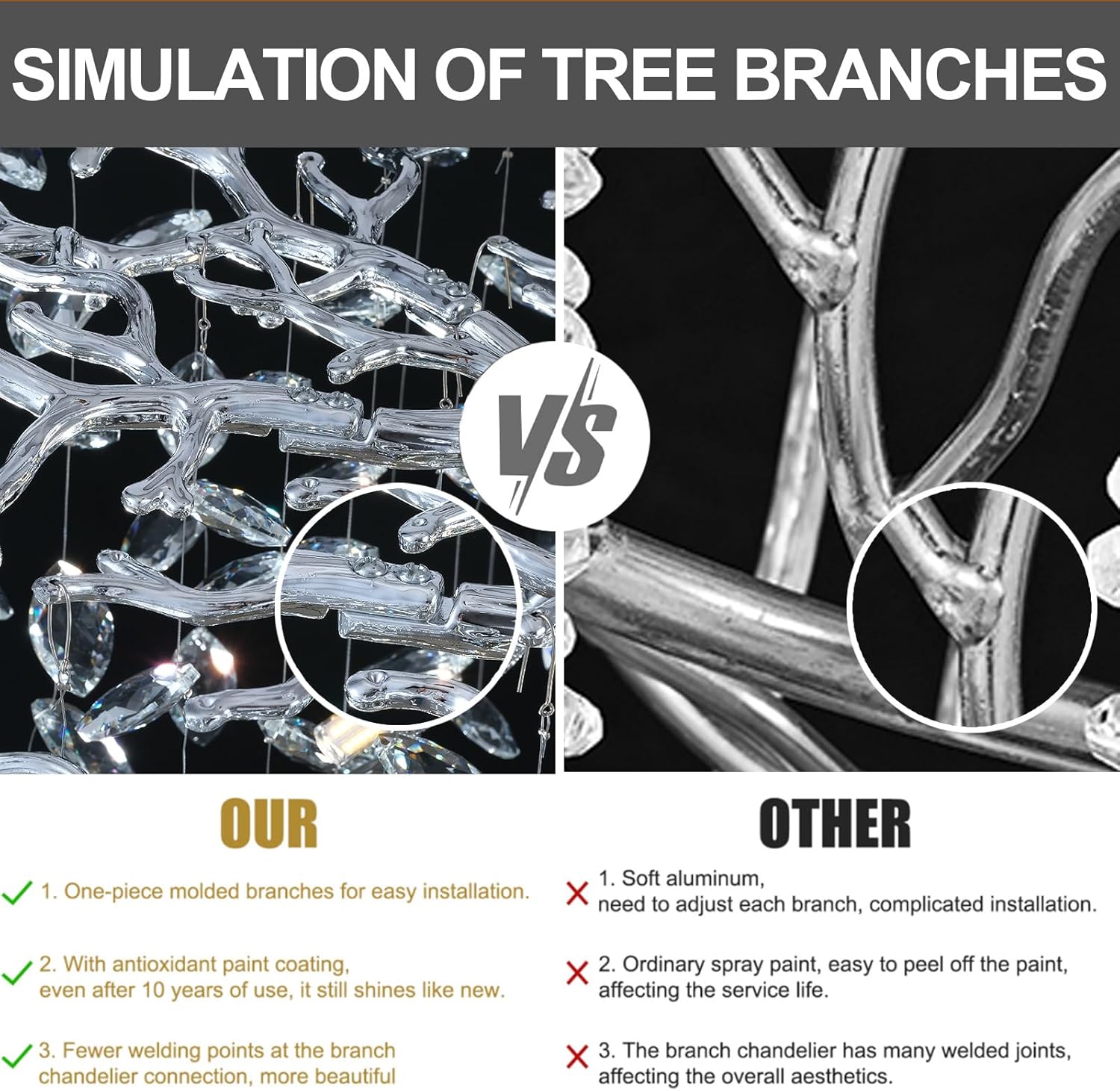 - 【Warranty】We Provide 5 Years Warranty For All Tree Branches Chandeliers, Including Replacement Of Lost Or Damaged Parts. If You Encounter Any Problems In The Installation Process, We Will Reply You In Time And Communicate With The Technical Department To Help You Solve, Please Be More Patient, You Will Love It After Installation!