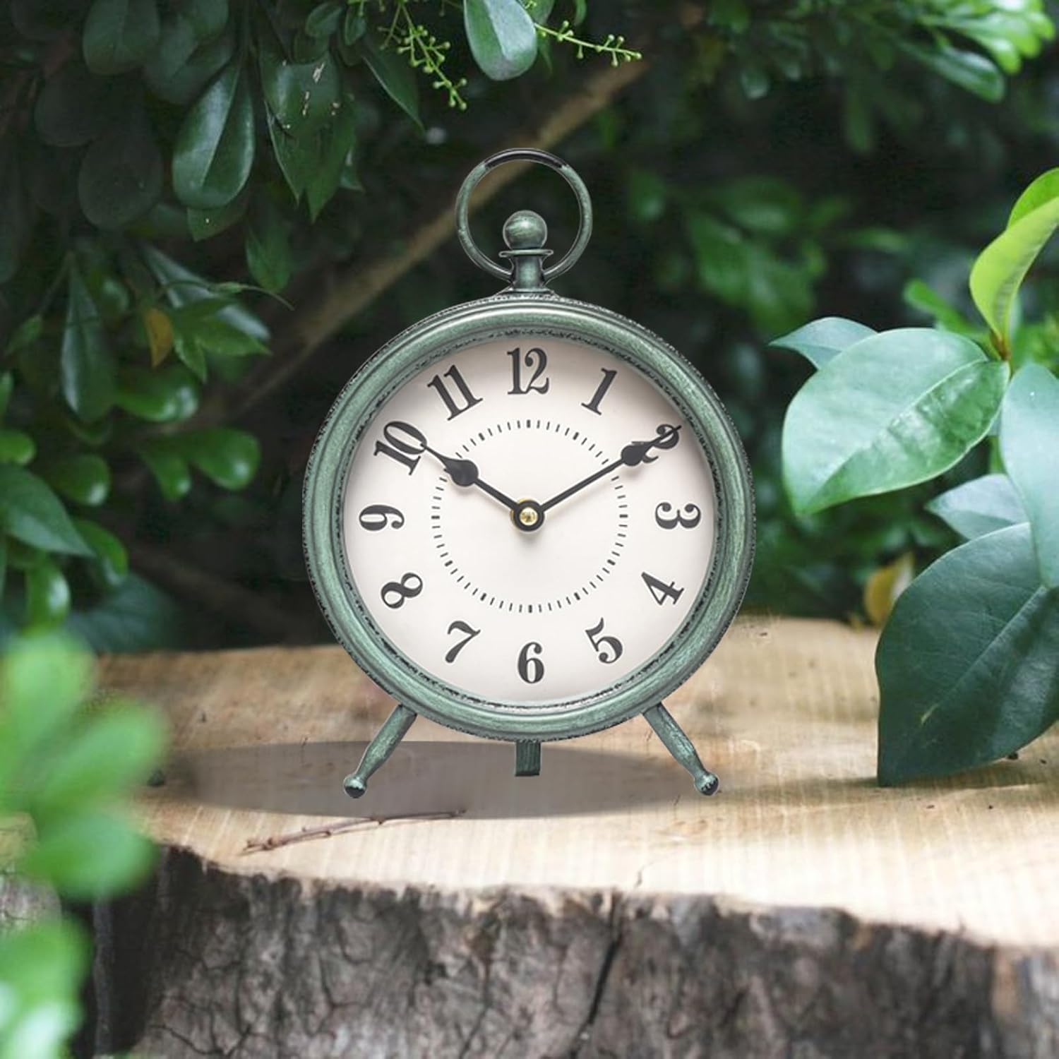 EMAX Home Vintage Green Rustic Retro Table Clock, Silent Non-Ticking, Battery Operated, 10.5"H, 7.28"W, Green Dial, Tabletop, Indoor, Kitchen
