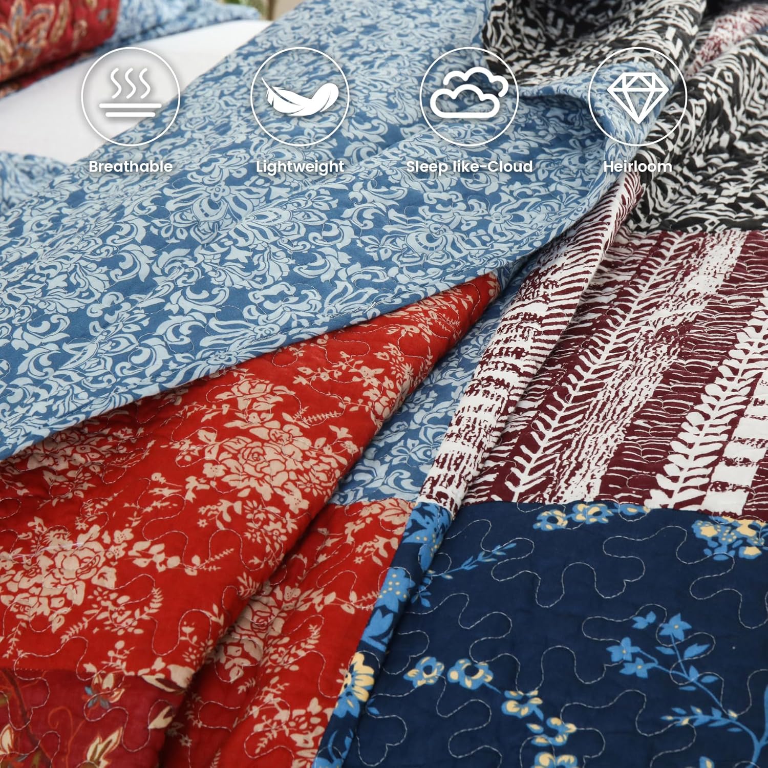 - Effortless Serenity!: Unlike other materials, our 100% cotton quilts offer unparalleled comfort, effortlessly soothing your senses. Cleaning is a breeze—simply toss it in the washing machine and let it dry. Designed for year-round use, you won’t need an old, heavy comforter in winter.