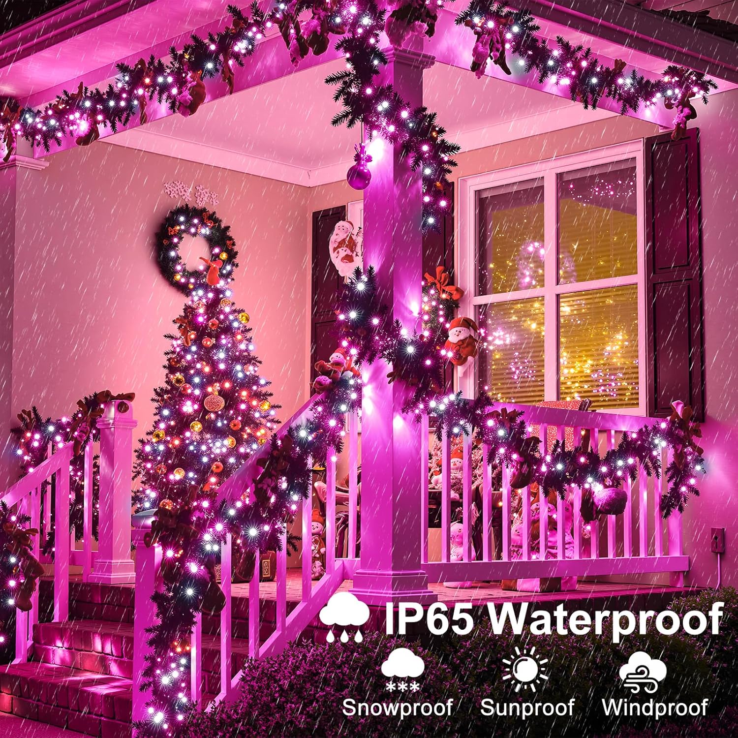 - Ideal for Outdoor Decorations: The Christmas lights outdoor is IP65 waterproof, it can withstand all kinds of weather, ideal for year-round decorations. These Christmas tree lights are fabulous decorations for your garden, bistro, balcony, terrace, pergola, gazebo, tent, umbrella, cafe, bedroom or other occasions. However, the power adapter is not waterproof.
