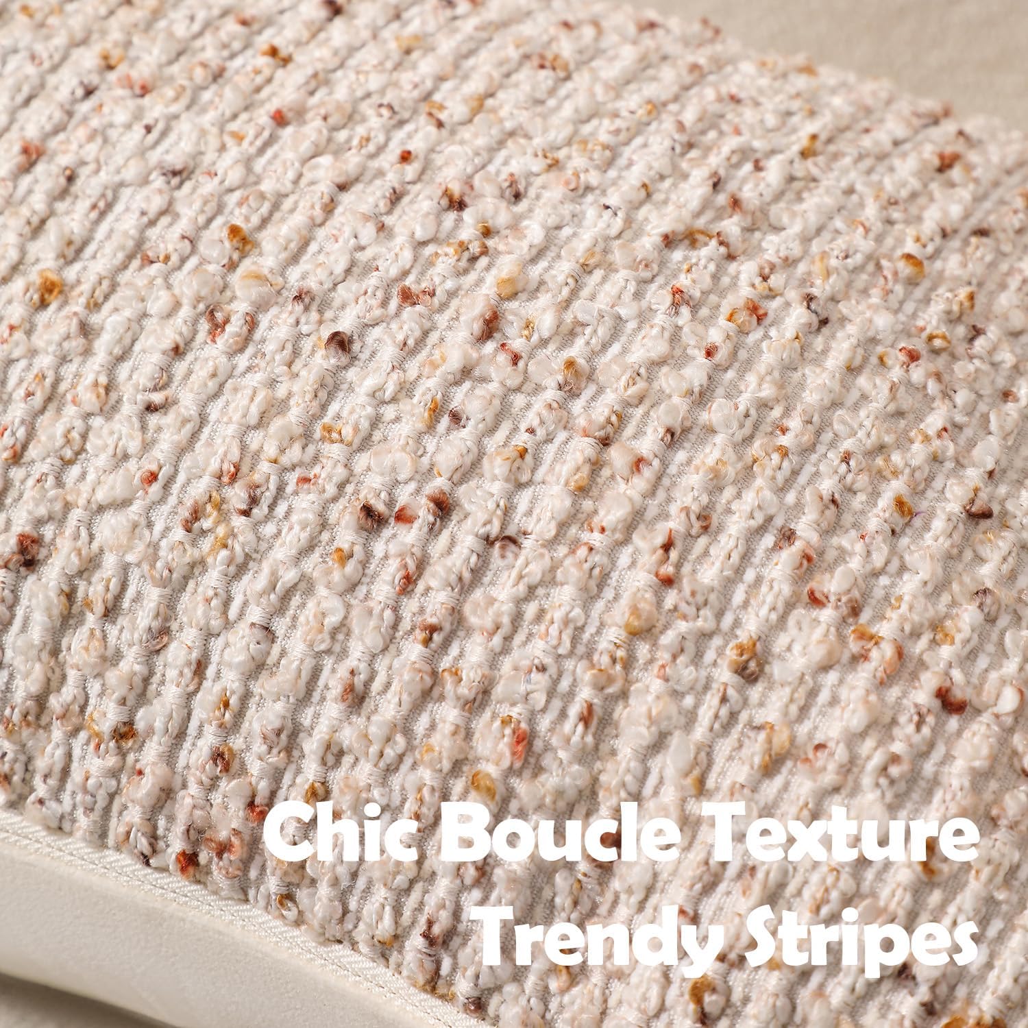 Striped Throw Pillow Covers 12x20 Set of 2 Beige Textured Boucle Chic Morden Boho Accent Farmhouse Rectangular Lumbar Decorative Couch Pillow Covers for Home Decor Bed Sofa Living Room