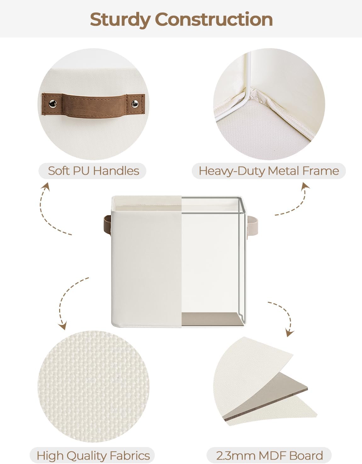 - Sturdy Structure: The fabric storage bin features metal frames supporting the top and sides, with a high-quality MDF base at the bottom, ensuring excellent overall structural stability.
