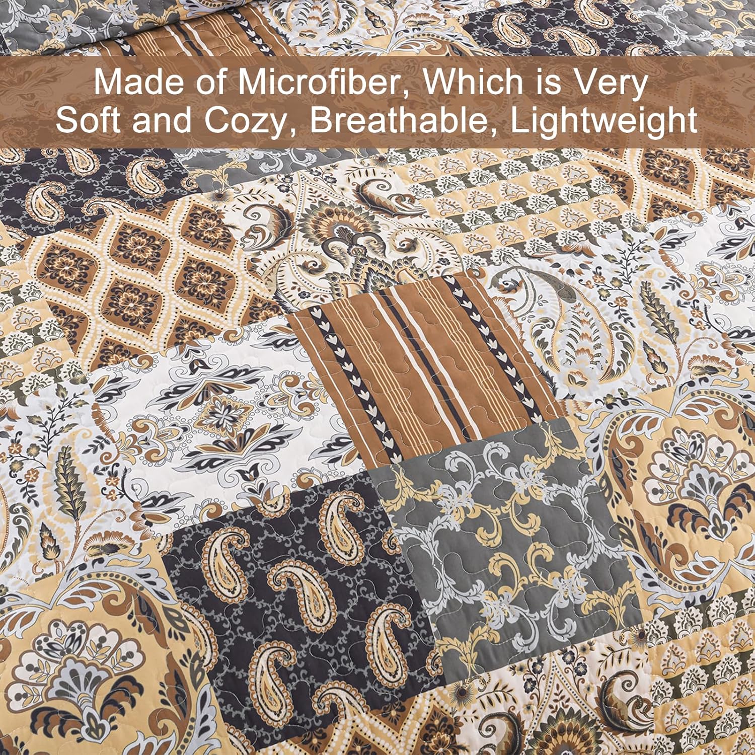 - SOFT MICROFIBER BEDDING SET: Dark brown patchwork quilt king size bedding is made from high-quality microfiber, our quilt sets king is soft to touch, lightweight, and breathable. The firm stitch ensures long-lasting durability.