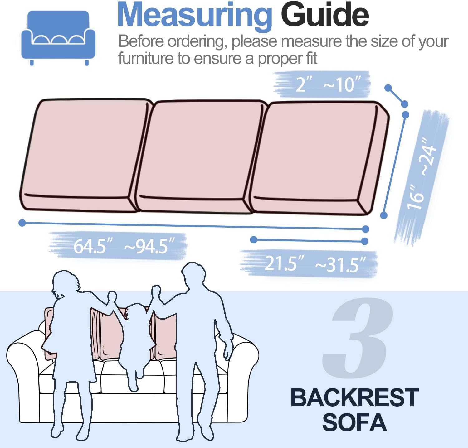 - 【Easy to install】These couch backrest cushion covers are incredibly easy to install and can be completed within just a few minutes. It comes with elastic bands that securely fix the cover to the sofa, ensuring it stays in the right position. Before placing your order, we highly recommend that you measure the size of your furniture to ensure a perfect fit. These covers are suitable for both T-cushion and Box cushion styles and are highly recommended for use with both leather and fabric furniture.