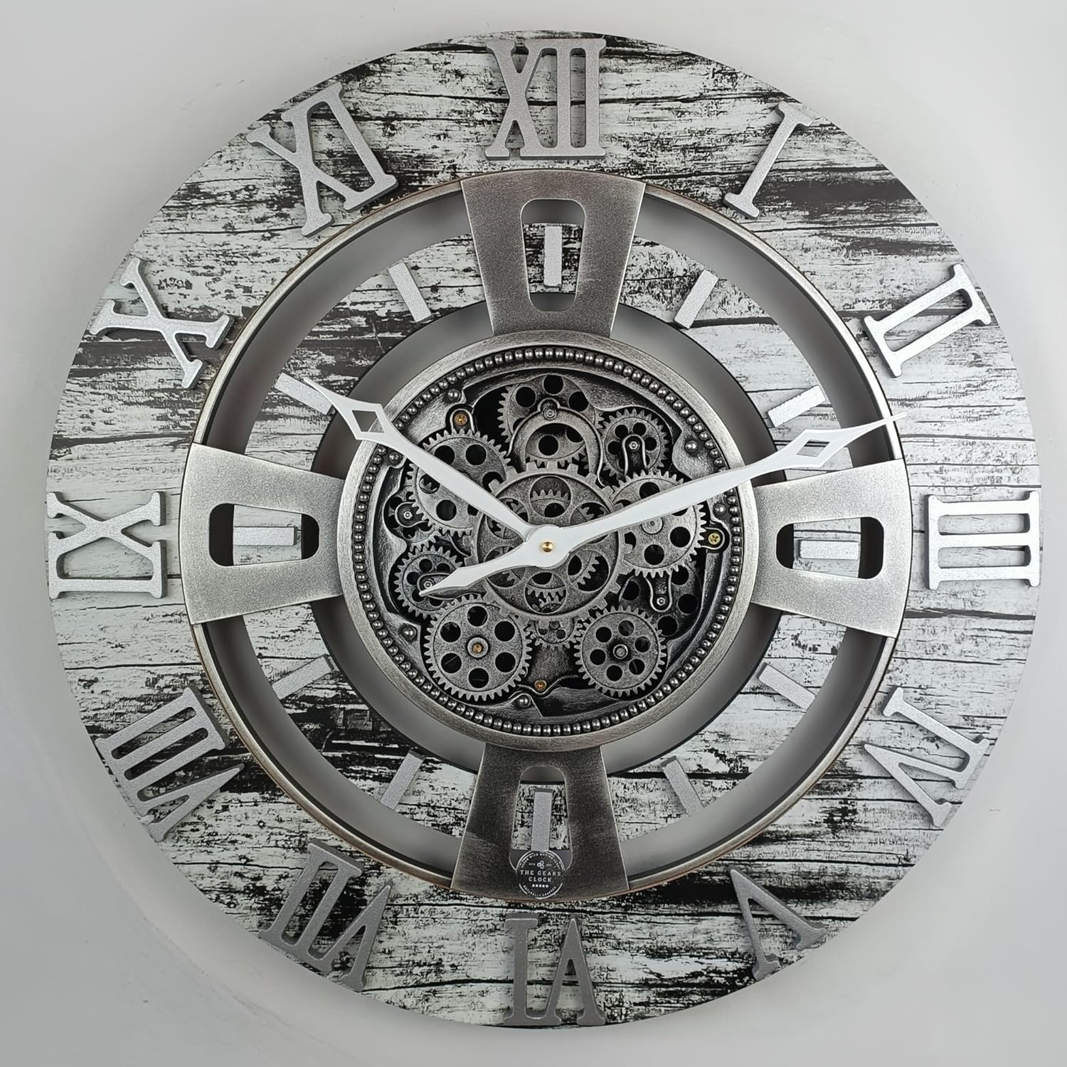 - MATERIAL QUALITY | The entire frame is made of Fir Wood, with embossed Silver Metal Numeral, and high Quality Plastic Silver with aged effect gears for vintage and industrial effect. Very Strong personality.