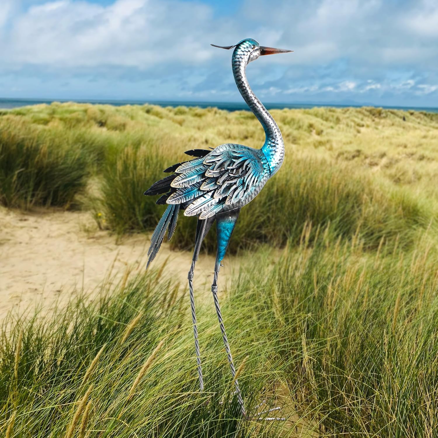 Crane Outdoor Decor Statue, Blue Heron Garden Statue Metal Yard Art Outdoor Decoy, Garden Sculptures & Statues for Yard/Lawn/Pond/Outdoor Decoration, 1Pc
