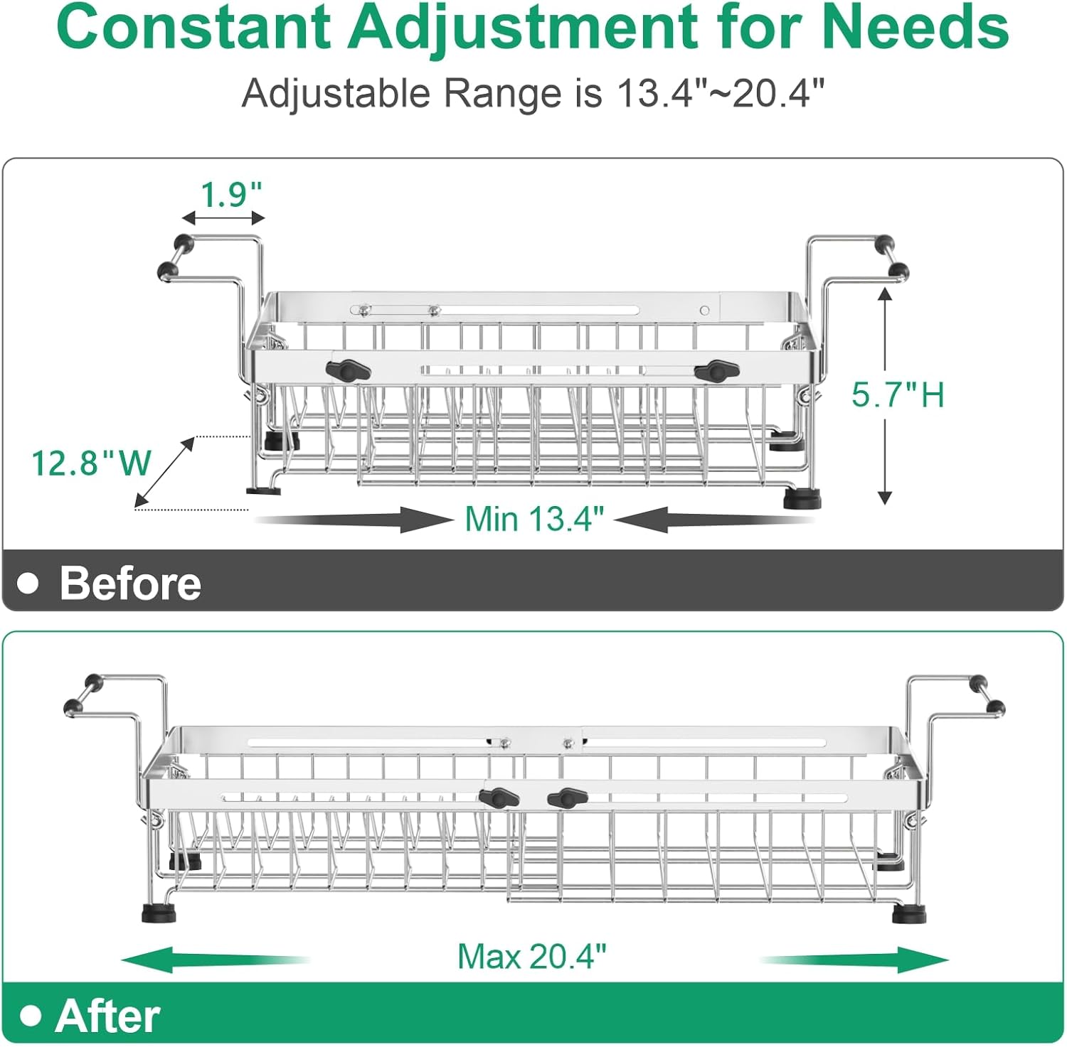 - Special Feature : Adjustable, Automatic Drainage, Expandable, Rust Resistant, Space Saving