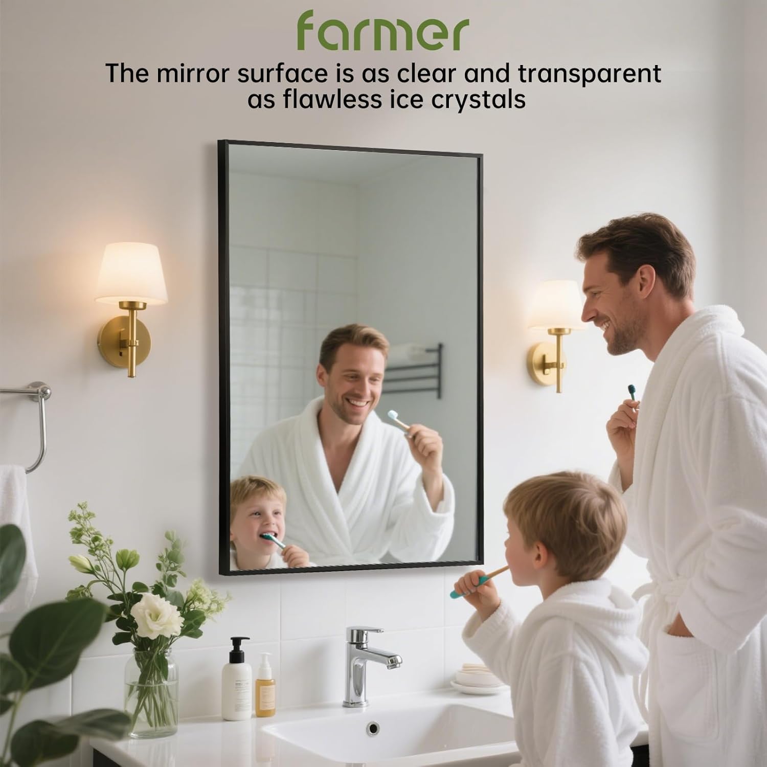 FARMER 16x24 Inch Black Bathroom Mirror, Rectangle Wall Mounted Mirror, Vanity Mirror, Brushed Square Mirror, Framed Bathroom Mirror for Bedrooms, Entryways, Living Rooms, Horizontal/Vertical