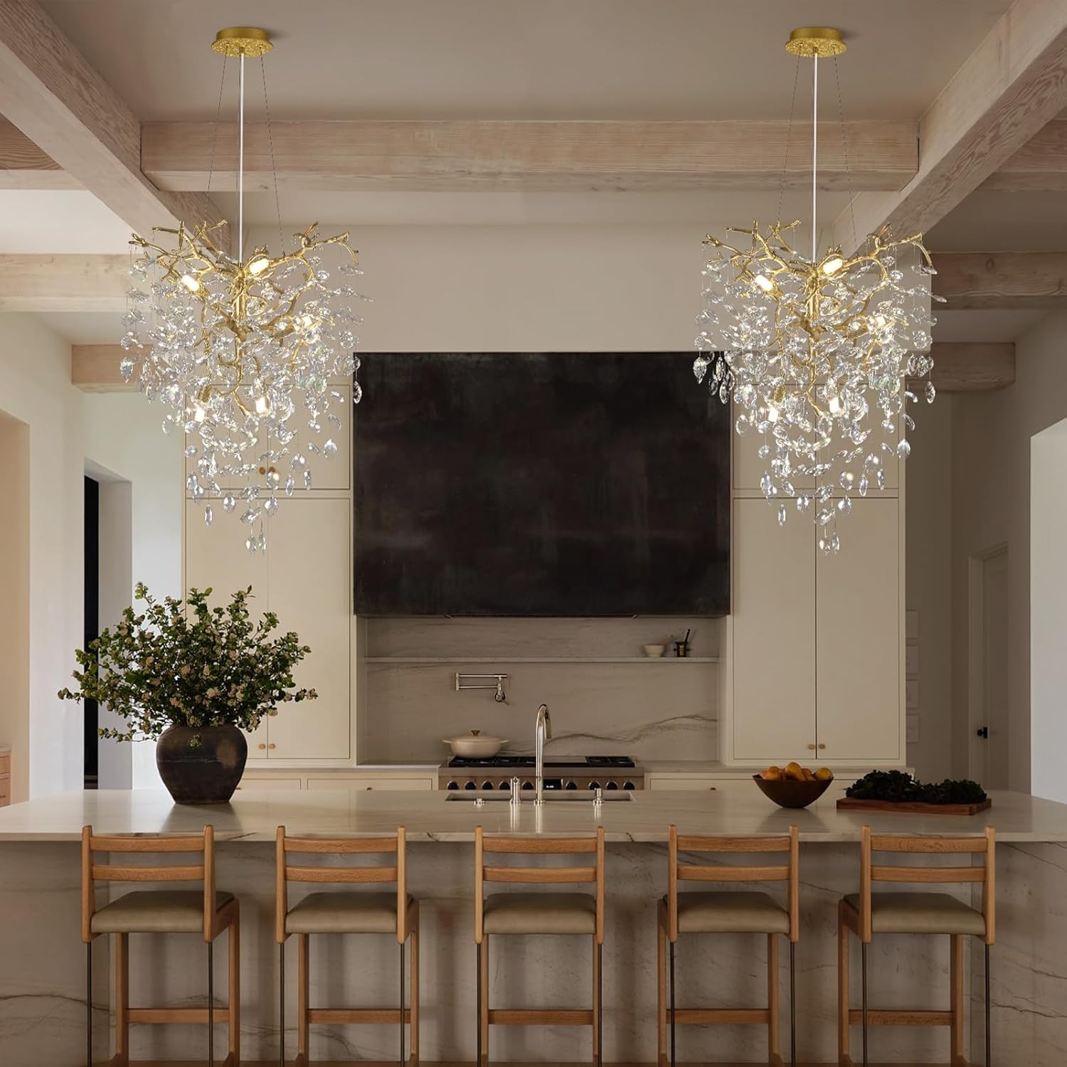 - Modern Crystal Tree Branch Chandelier:Crystal chandelier crafted with exquisite gold decorative branches and stunning TOP K9 transparent crystals that evoke purity and romance,and crystal chandelier frame is made of aerospace-grade aluminum alloy.this fixture shimmers like diamonds when illuminated,presenting a natural artistic beauty.