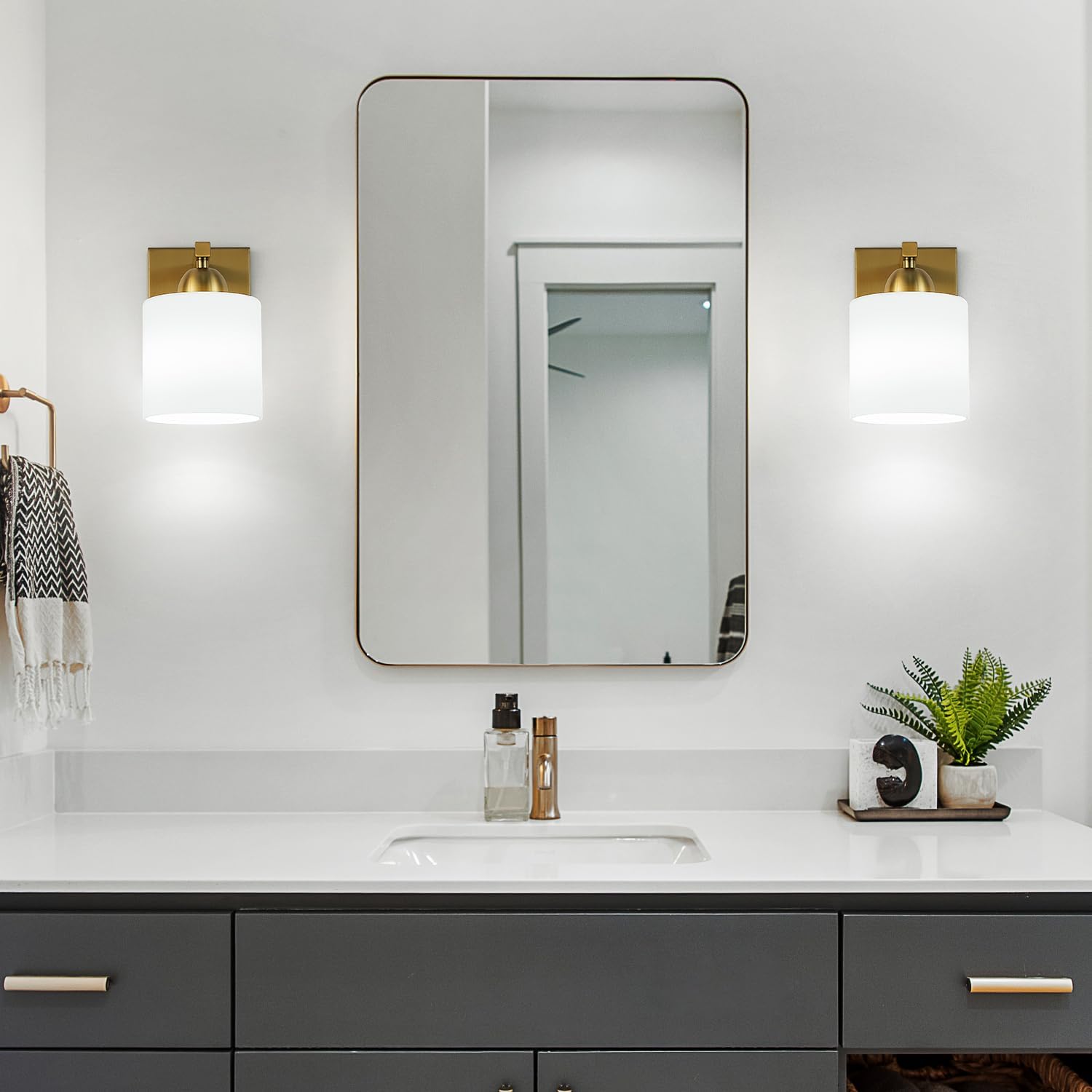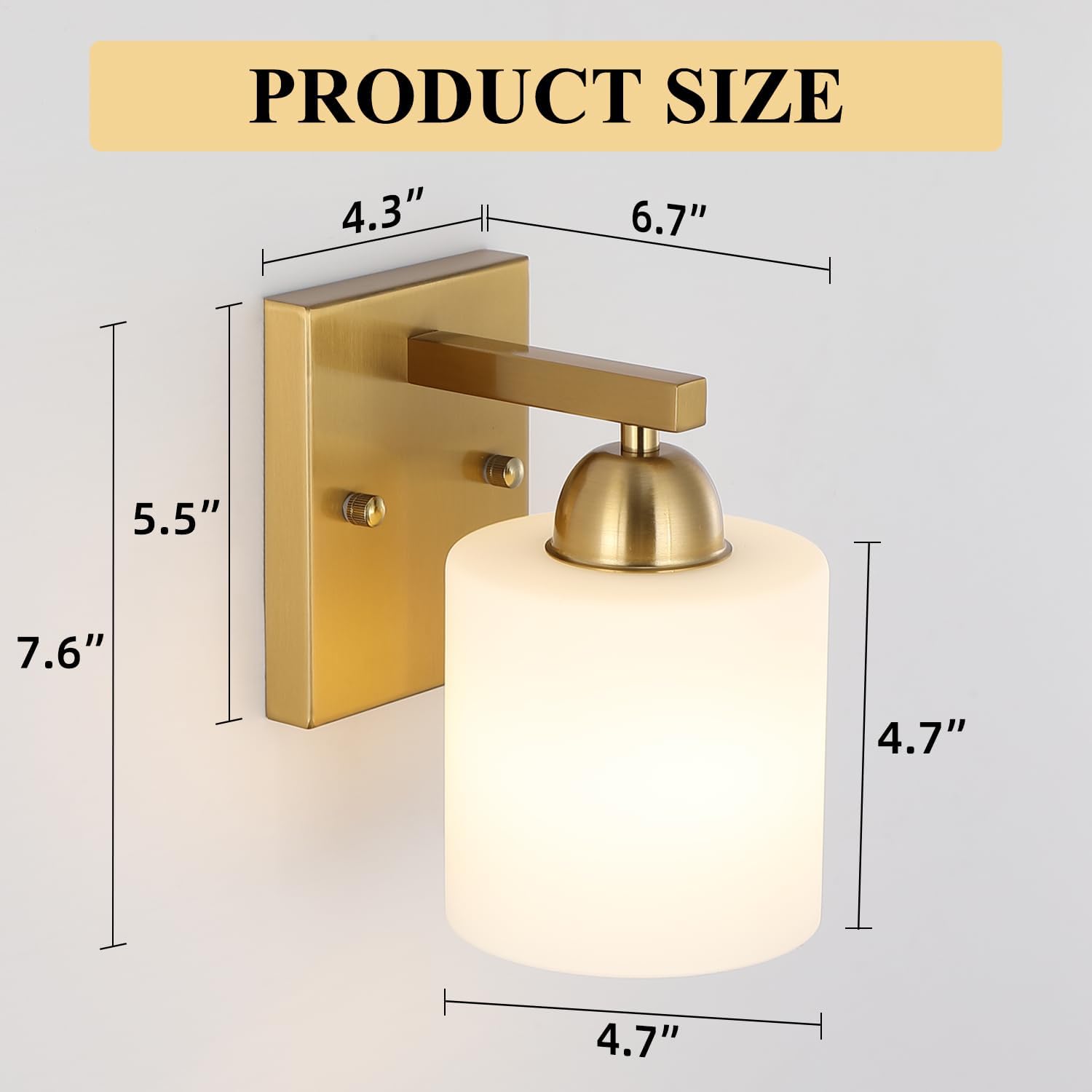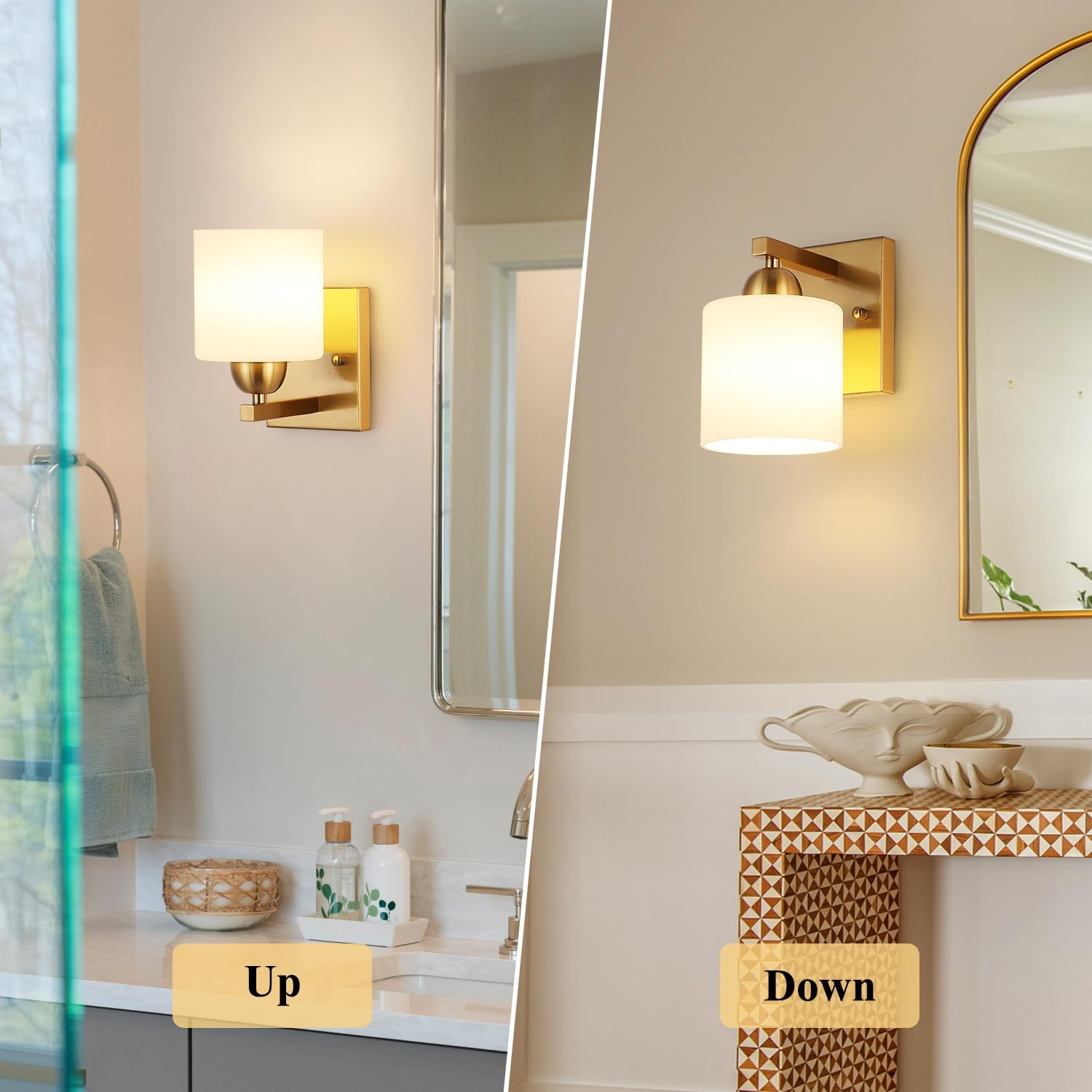 Gold Milk Glass Wall Sconces, 1 Pack Hardwired Indoor Wall Light Fixtures for Living Room, Hallway, Bedroom, Ceramic E26 Sockets (Bulbs Not Included)