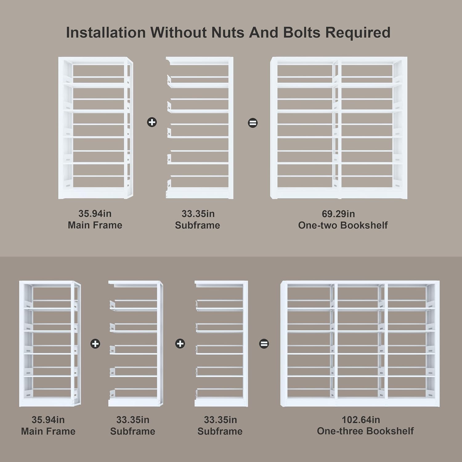 White subframe. Cannot be Used Alone. It Needs to be Used in Conjunction with The Main Bookshelf. Modular Extension Bookshelves can be Used to Place More Items (White)
