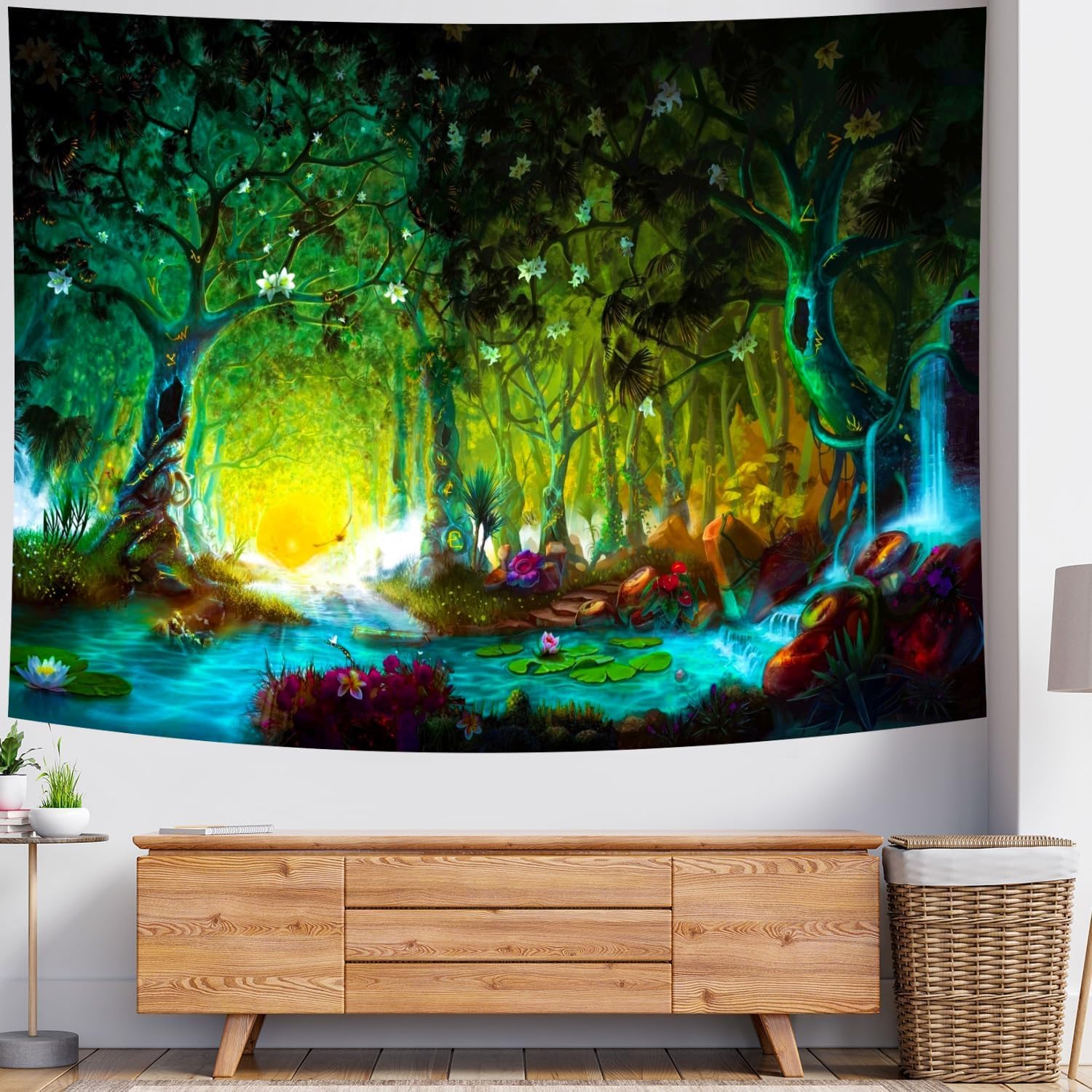 - 【PREMIUM MATERIAL】Delur Fantasy Forest Tapestry is made from environmental-friendly polyester fabric, which is soft, comfy, stretchy, skin-friendly, durable and lightweight. The detailed sewing and creative design make it an essential element for your room decorations.