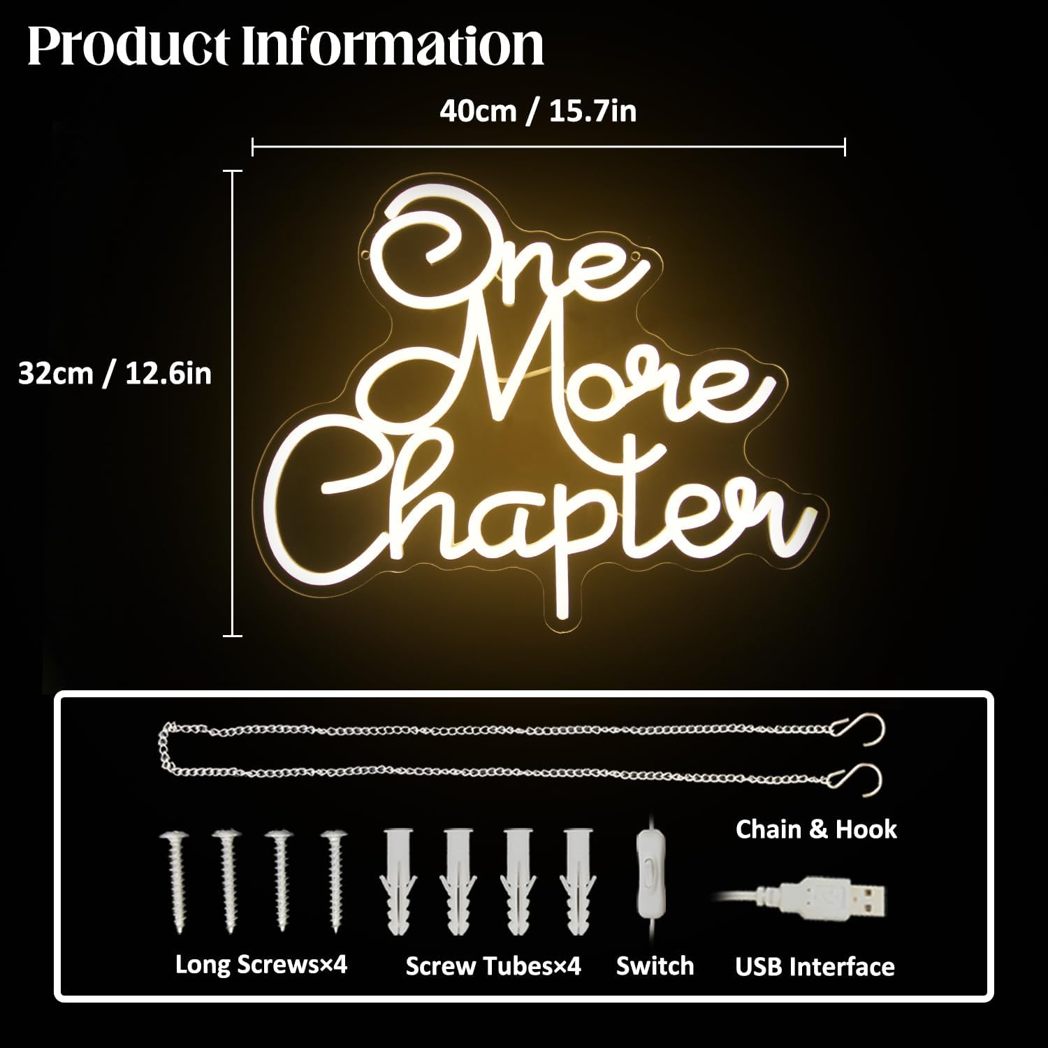 - 【Letter Neon Sign】: One more chapter neon light adds a unique and warm atmosphere to your room, making it a nice conversation starter and a must-have for book lovers. The size of read books neon LED sign is 40 x 32 cm/15.7 x 12.6 in, larger than other neon effect sign