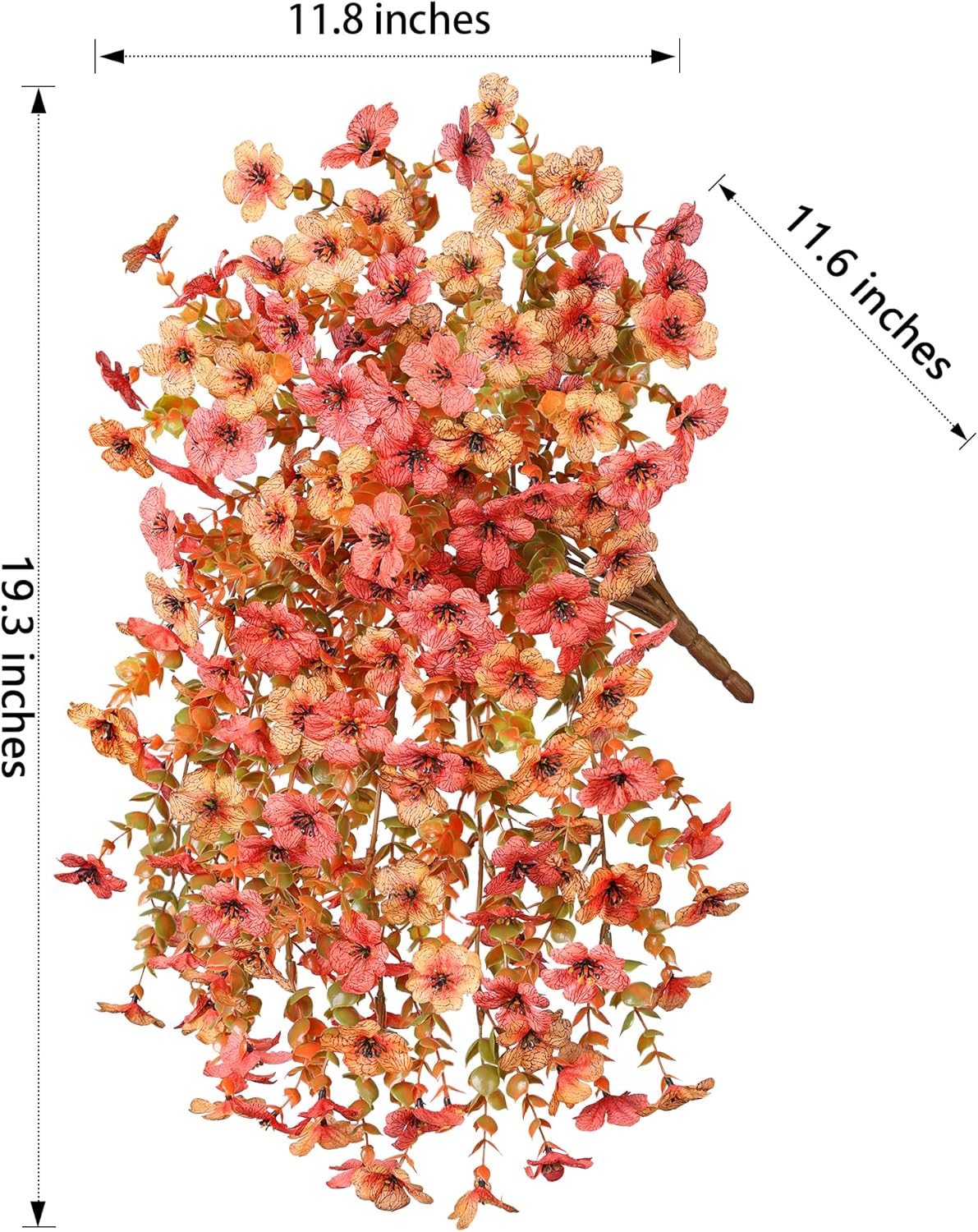 - Package include: 2 bundles artificial mums for outdooors with eucalyptus trailing Vins. Our artificial flowers are perfect for any space. They are also perfect choice for fall indoor and outdoor decorations.