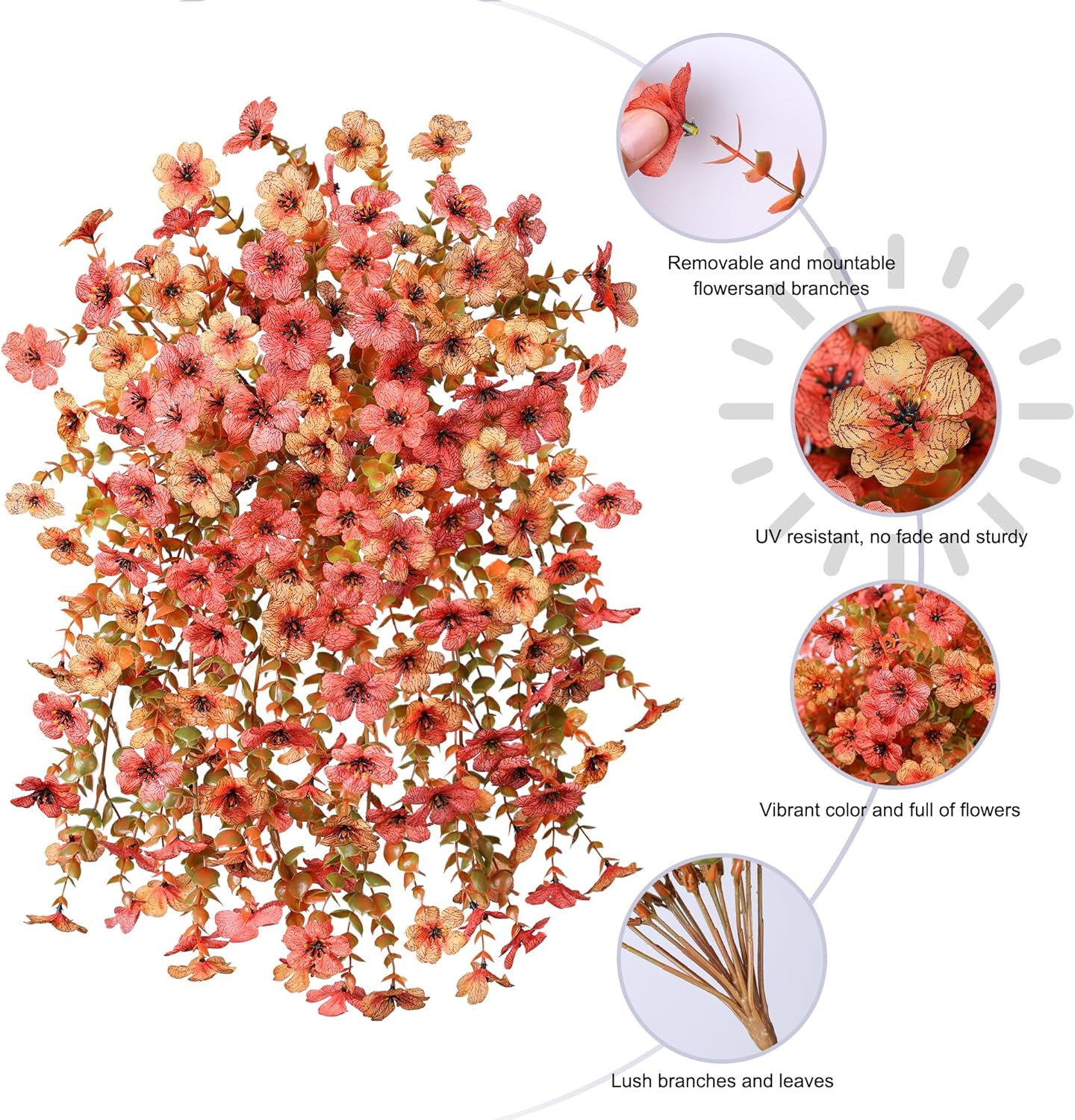 - Durable and UV Weather-Resistant: The fake hanging plants flowers are made of high quality silk cloth and plastic, UV and all weather resistant, waterproof and no fade in the sun and rainstorm.