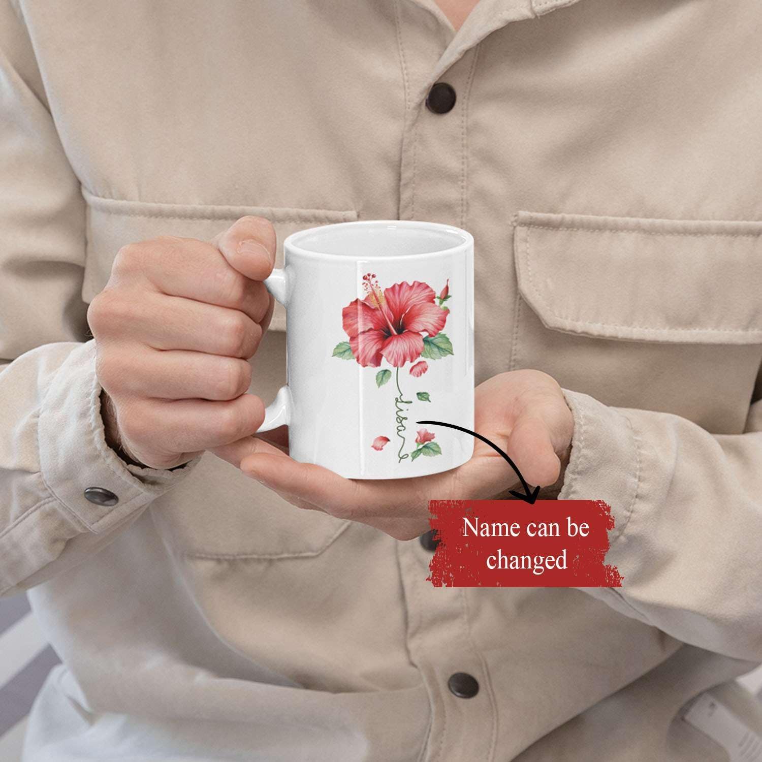 Personalized Hibiscus Blossom Design Mug, Custom Name Vibrant Flower Coffee Cup, Customized Mug For Floral Enthusiasts, Novelty Hibiscus Flower Ceramic Cup 11oz 15oz, Gift For Women
