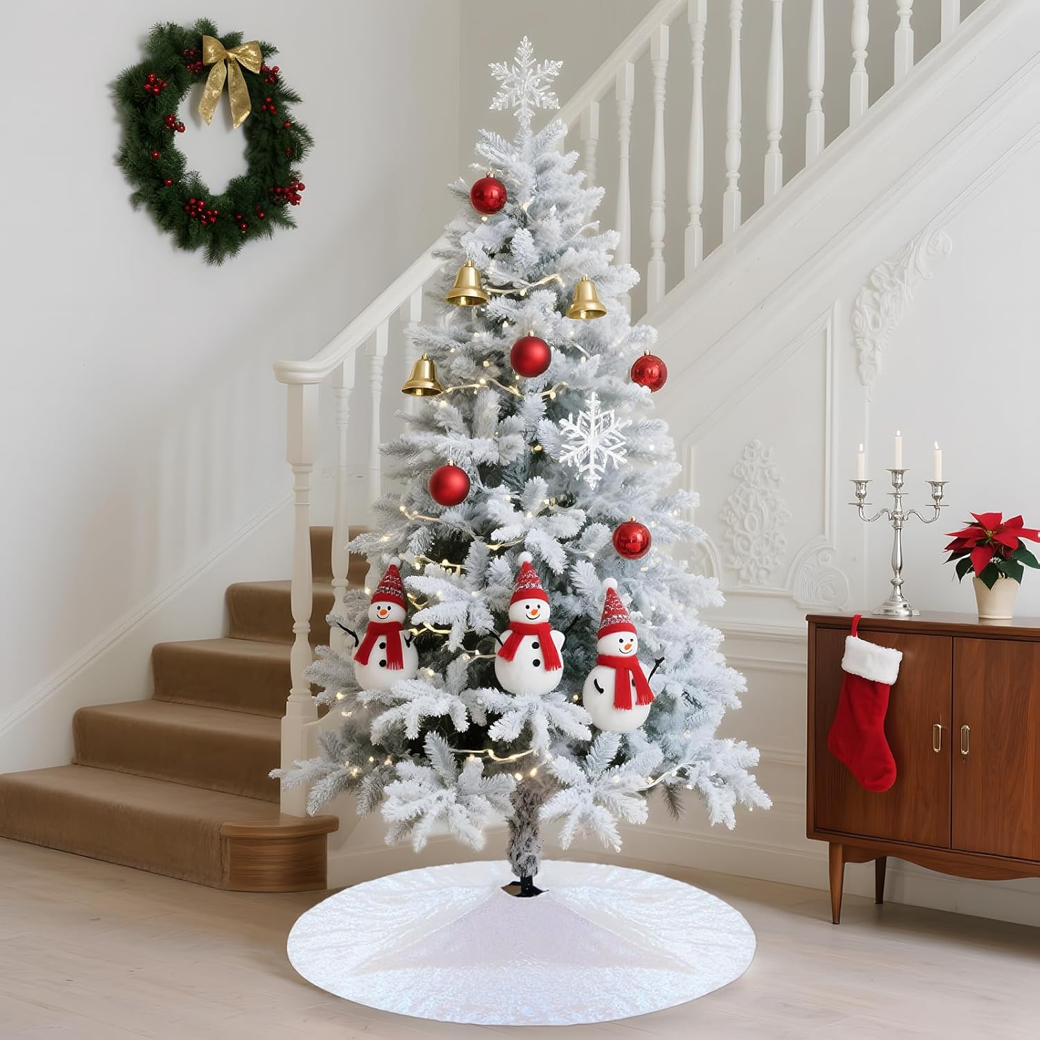 - 【Widely Application for Christmas】The round tree skirt great for indoor and outdoor tree decorations. Great for living room, office, theme party, classroom, supermarket, garden, bar, hotel, and any other scenes. Bring warm and comfortable atmosphere into your home