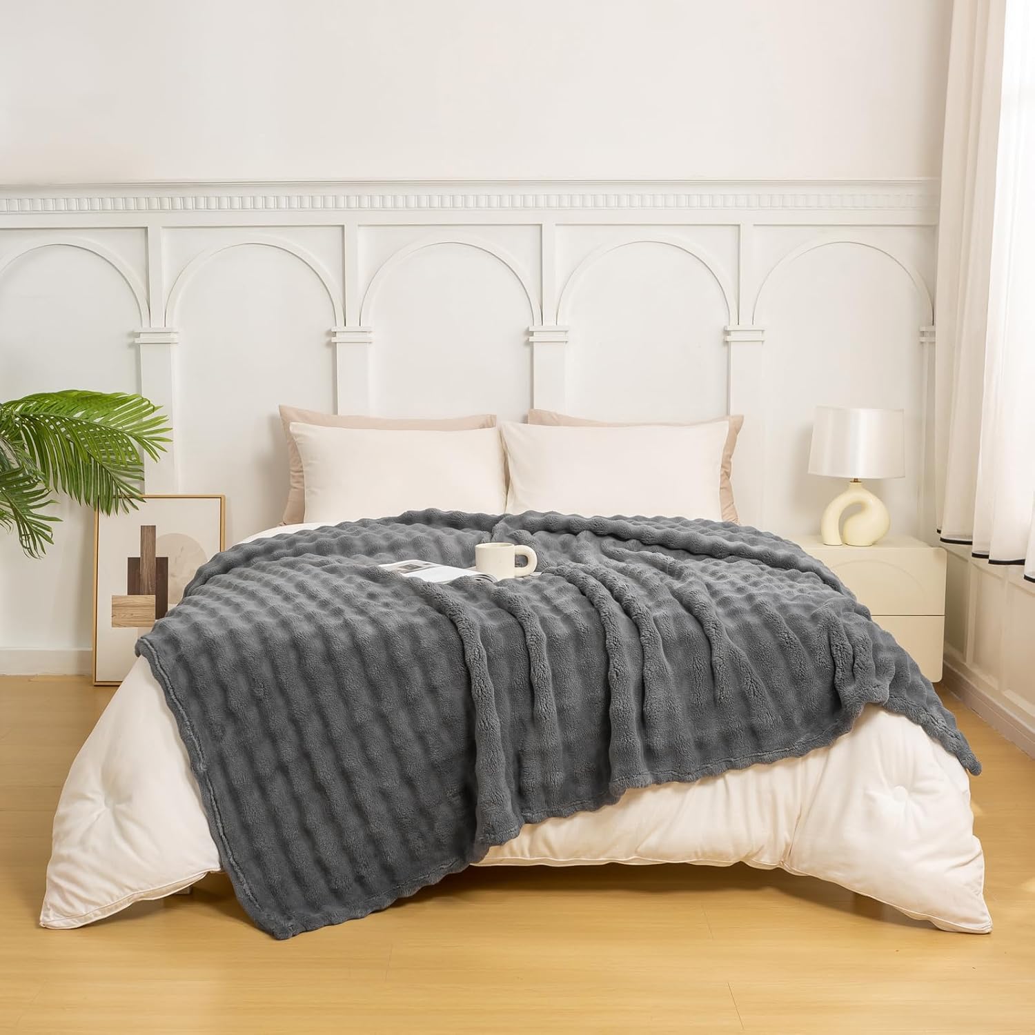 YUSOKI Luxury 3D Bubble Throw Blanket 3.1lb,All Ages,Home Decoration, (Grey,60 * 80inches)