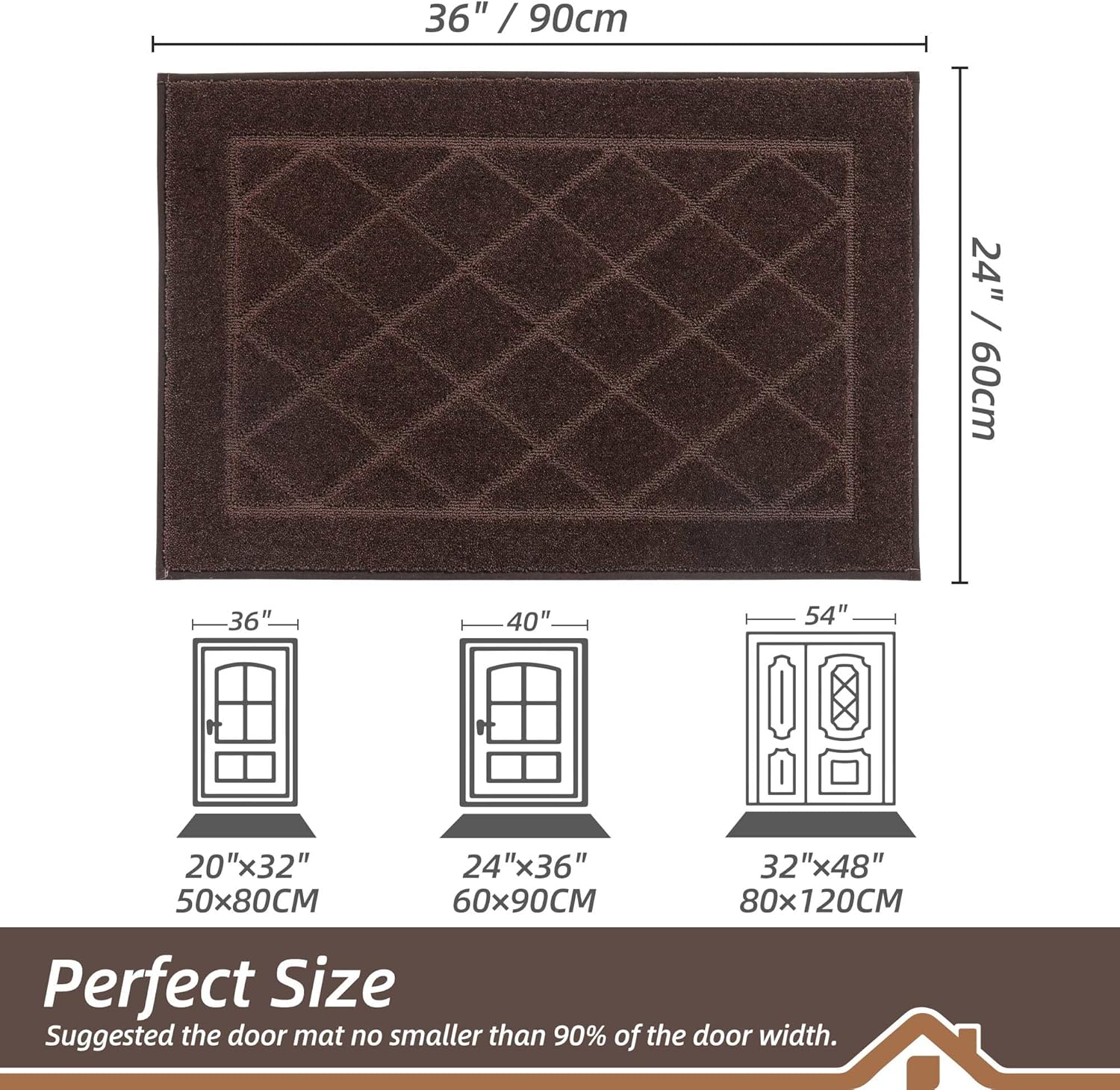 BEQHAUSE Dirt Trapper Door Mat 24" x 36", Doormat Non-Slip Entryway Rugs Washable, Dog Door Mat Stain Resistant and Absorbent Welcome Floor Mat for Front Back Door, Muddy Wet Shoes & Paws, Brown