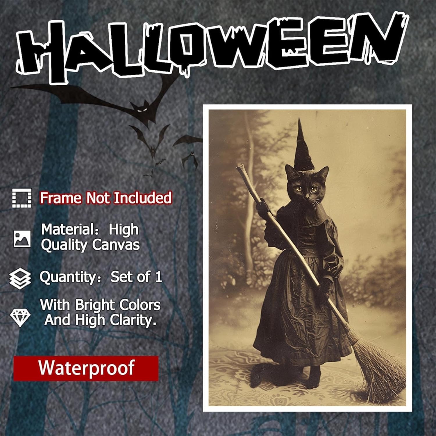 Halloween Decor Posters Black Cat Witch Canvas Wall Art Vintage Spooky Print Of Gothic Room Family Dark Academia Decorations Creepy Picture Poster Aesthetic 12X16inch Unframed