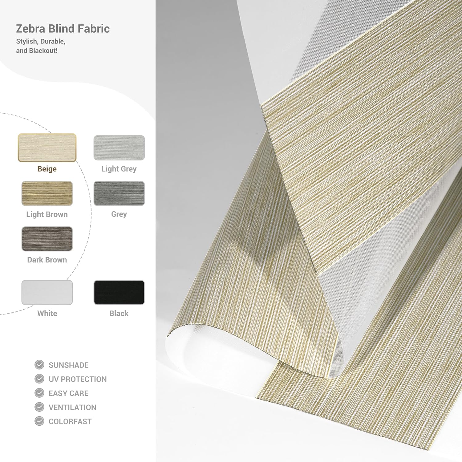 Cordless Zebra Blinds for Windows, Blackout Interior Blinds,Easy to Install,UV Protection,for Offices and Home,Custom Roller Shades, Mousse Beige,27" W x 48" H