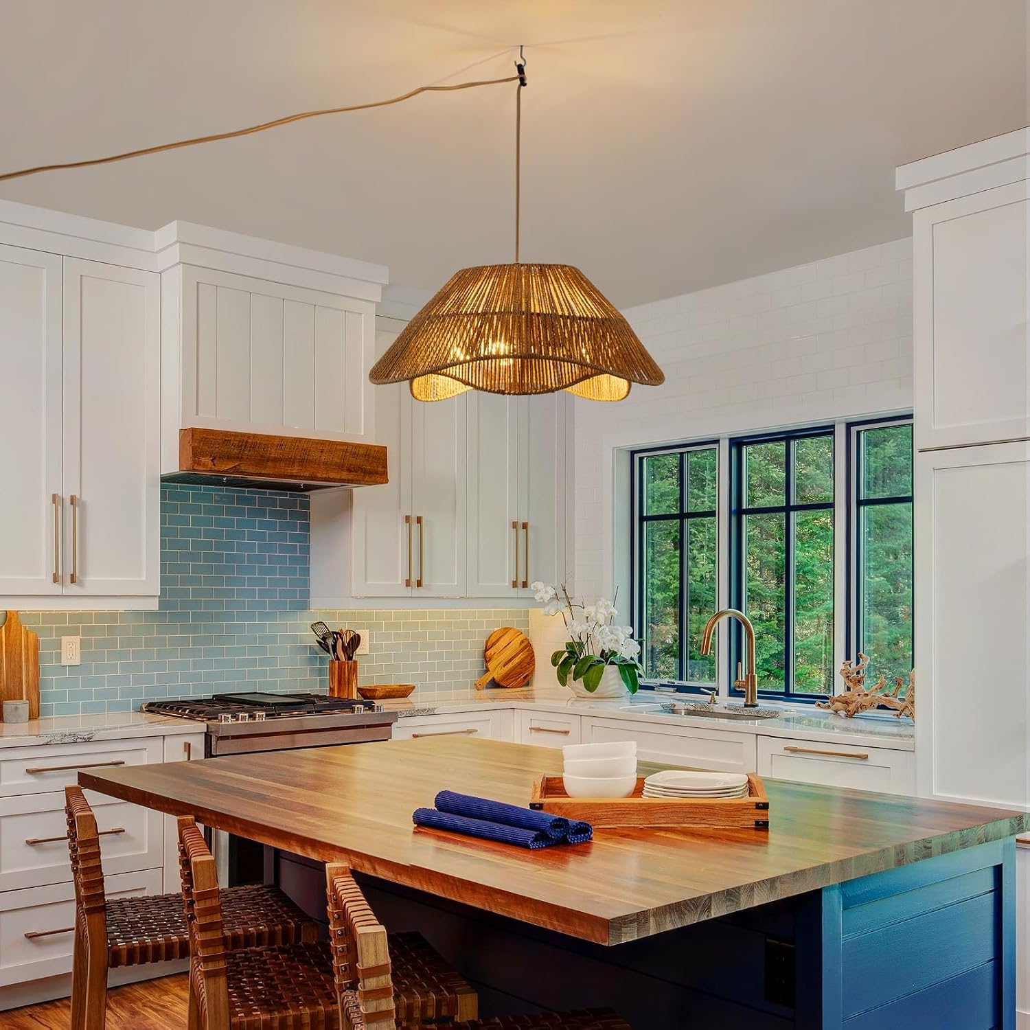 - 【Adjustable Height & Widely Used】 The rattan hanging pendant light comes with a 14.76 ft cord that makes it easy to place the light where you want it for your lighting needs. There are three bulbs inside, so it gives off plenty of light. It would be ideal in a dining room, kitchen, bedroom, living room, hallway, entryway and more.