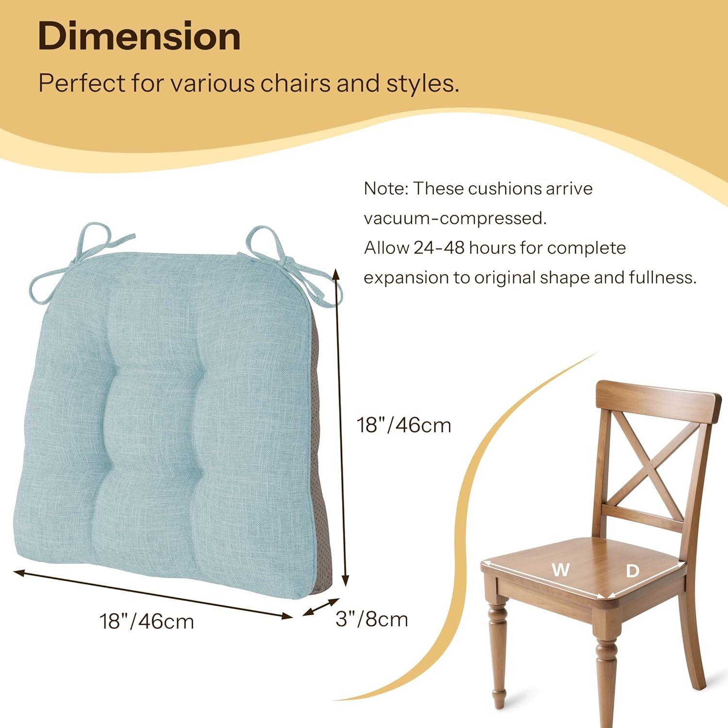 Non Slip Chair Cushions for Dining Chairs Set of 4 Kitchen Chair Cushions 18"x18"x3" Turfted Chair Pads Comfortable and Soft Seat Cushion with Ties, Aqua Blue