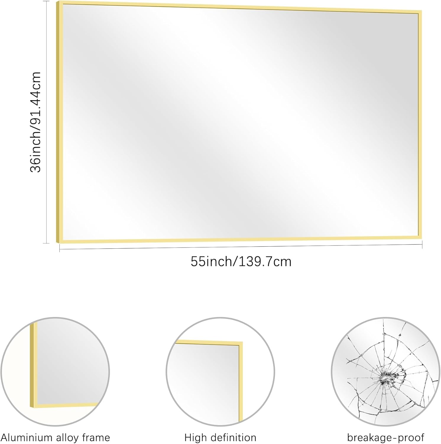 36x55inch Bathroom Mirror, Gold Rectangle Mirror with Thin Metal Frame, Large Rectangular Wall Mirror for Bathroom, Living Room, Hair Salon, Big Farmhouse Mirror Hang Horizontal/Vertical