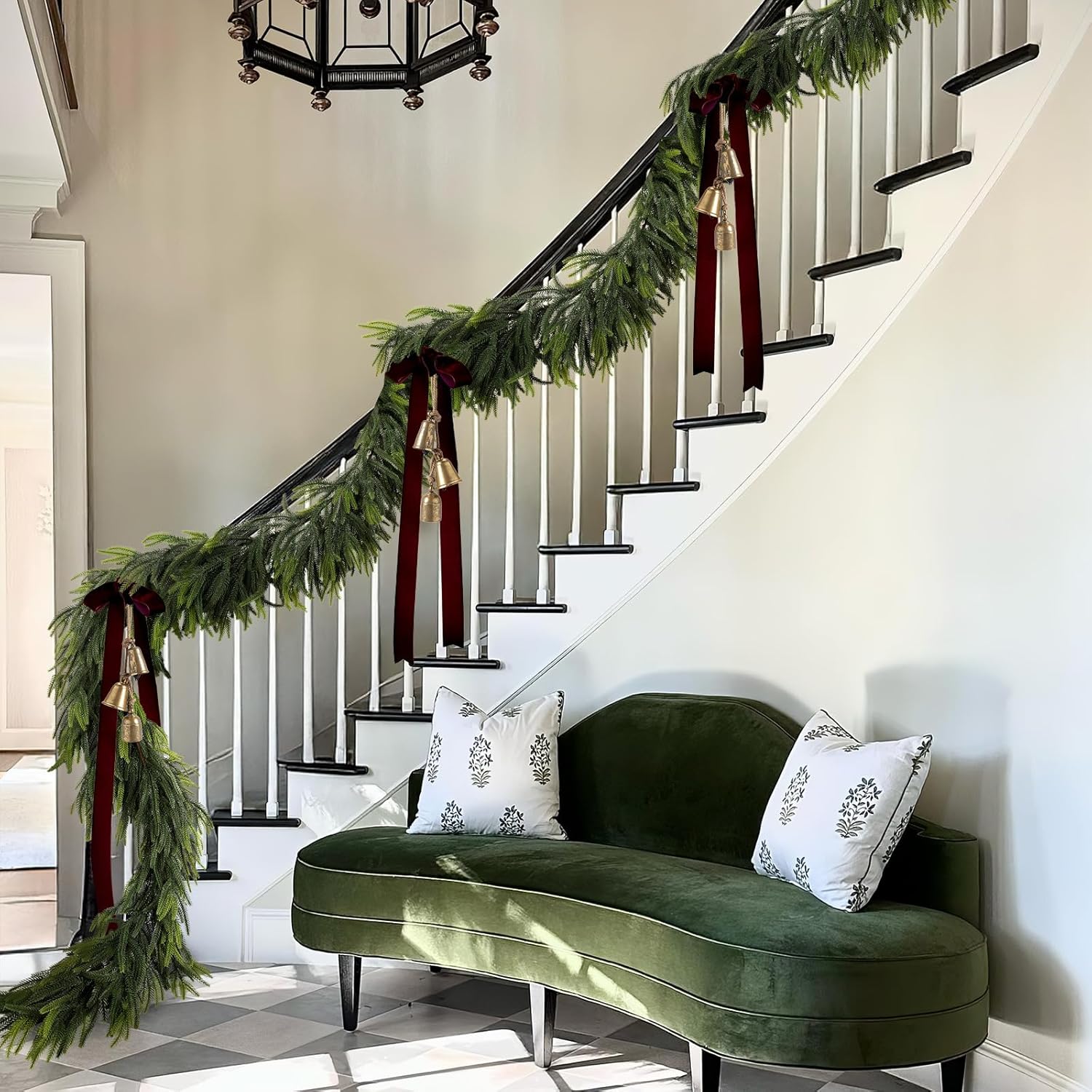 - Real Touch Norfolk Pine Garland: Each pine needle on the artificial pine garland realistic transitions from light green to dark green, mimicking the color of Norfolk pine. No need to spend time on maintenance, xmas garland is always fresh and will not rot