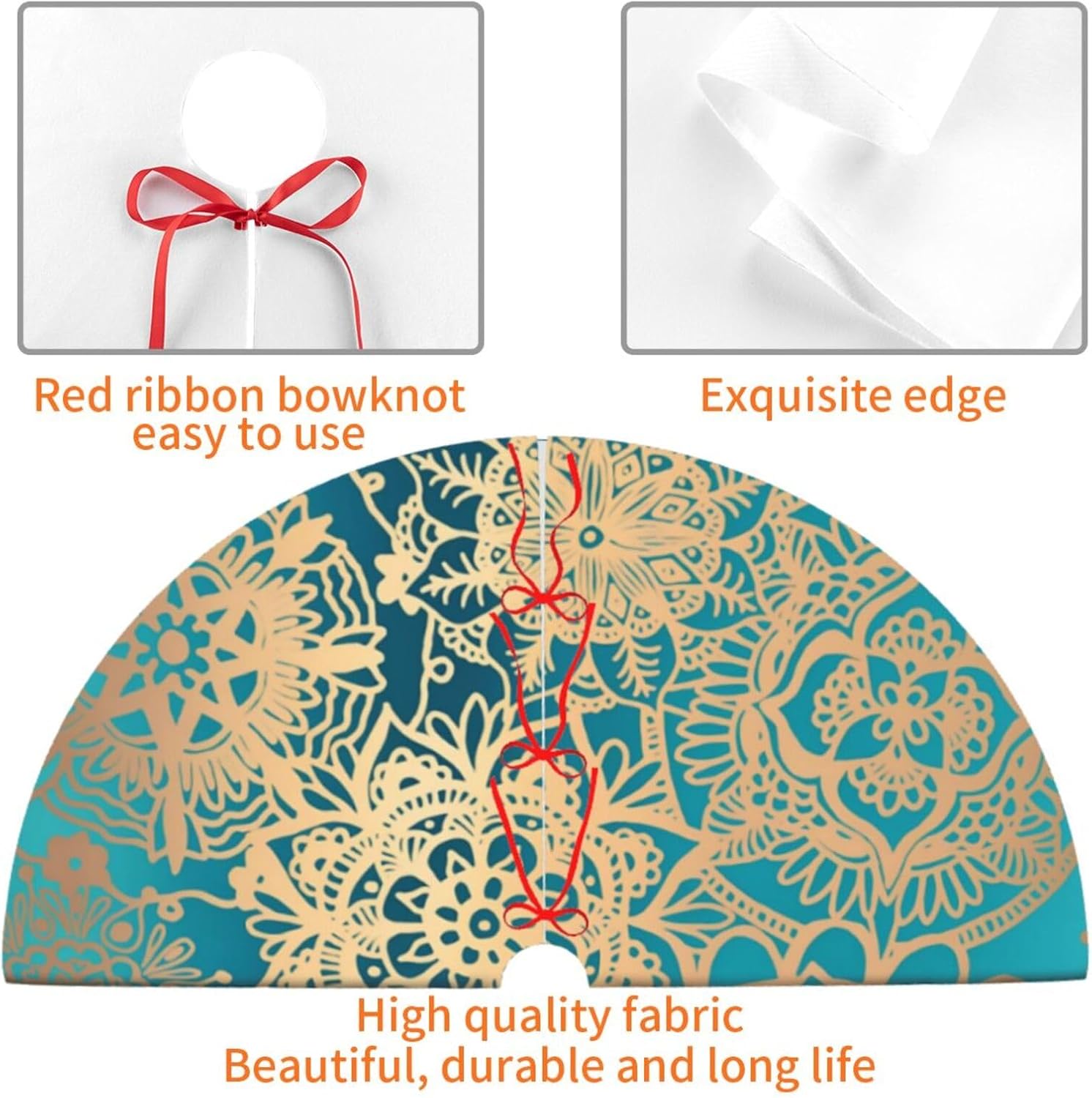 36" Large Christmas Tree Skirt, Elegant Teal Green Mandala Pattern Pattern Tree Mat Base Cover for Xmas Festive Holiday Party Decoration Ornaments