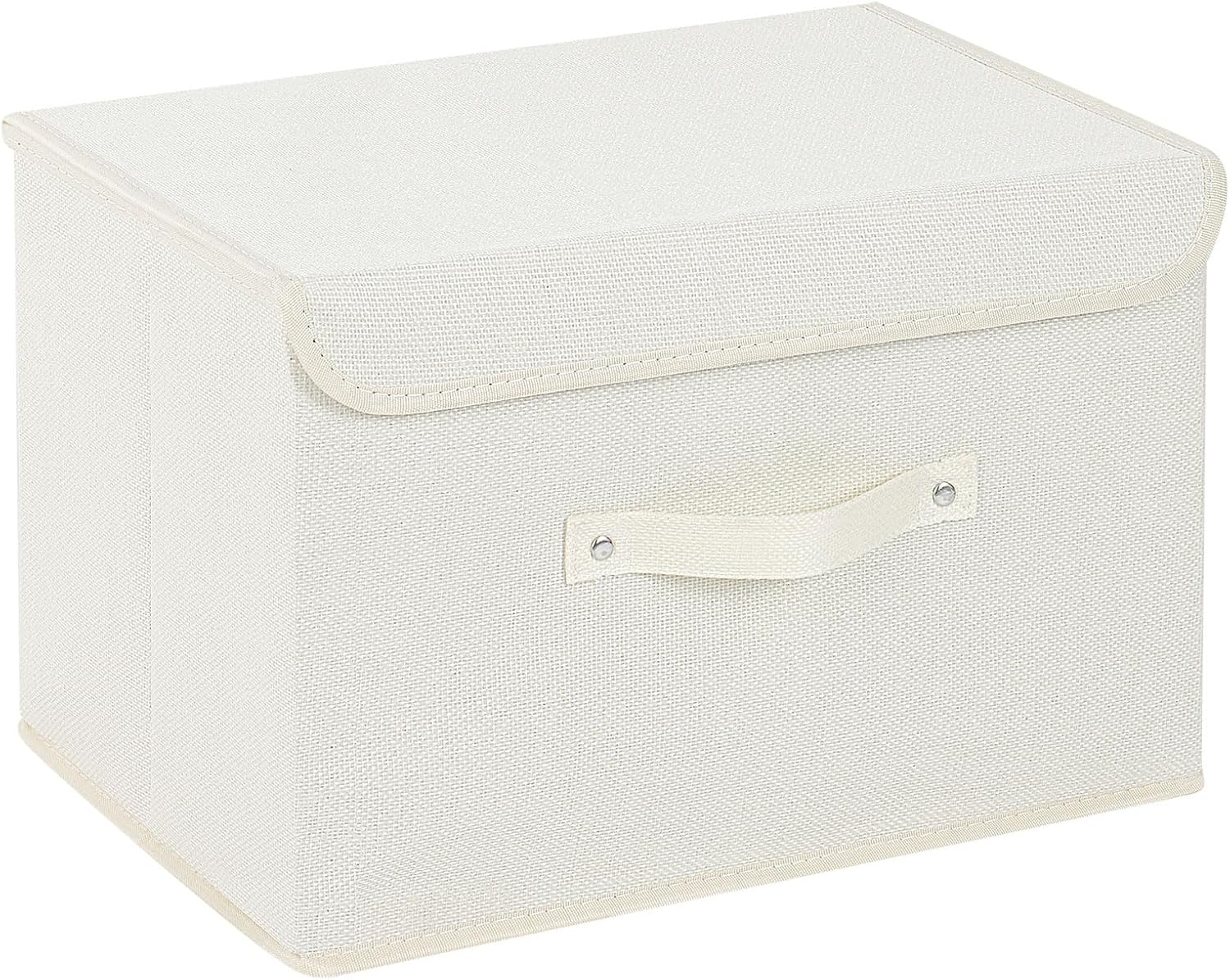 Storage Boxes, Collapsible Storage Bins with Lids, Cotton and linen cloth Storage Baskets with Handle, for Books, Closet, Bedroom, Home, 15x9.8x9.8 in, Beige
