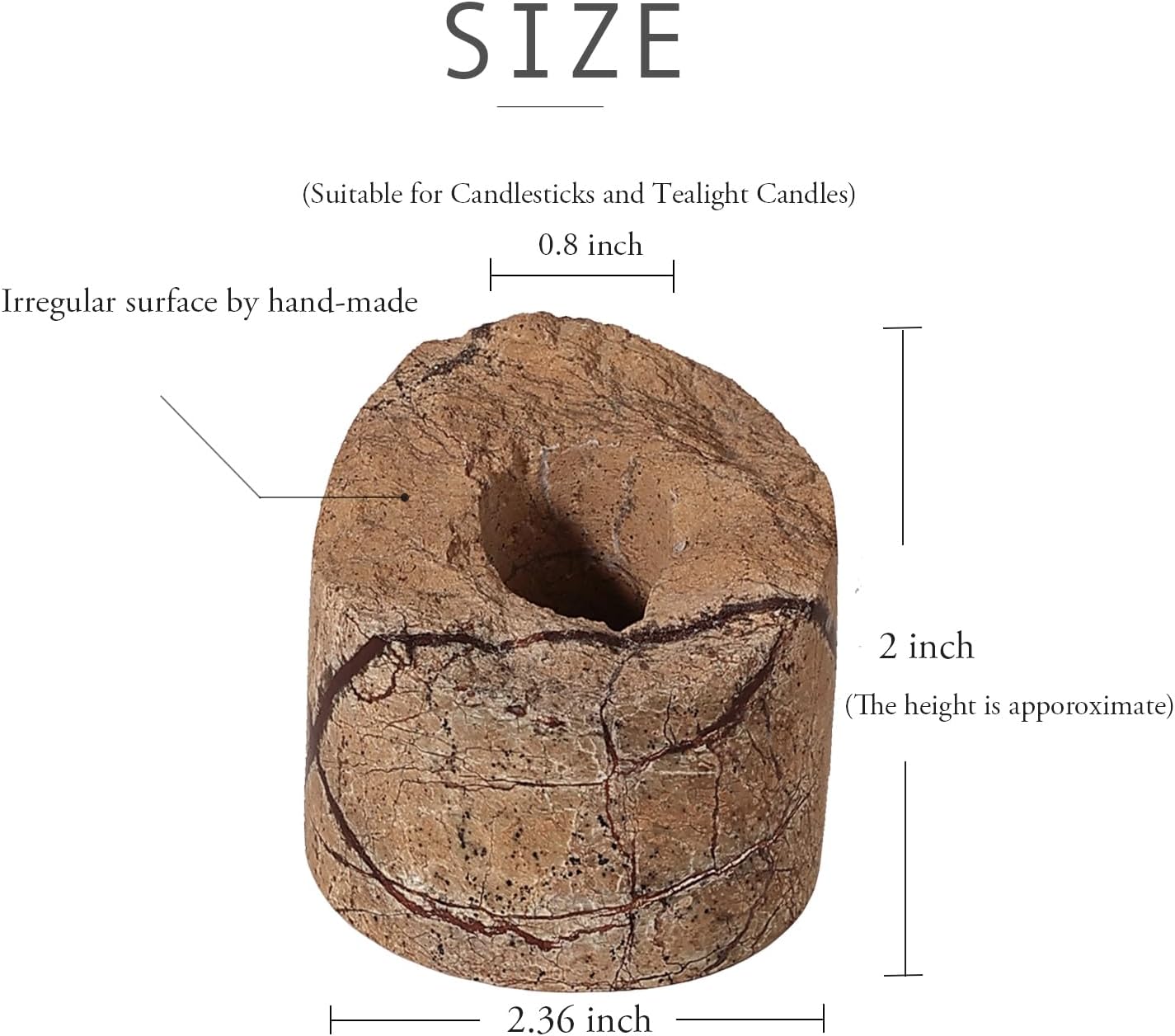 - Unique Hand-made Irregular Design: JIMEI candle holder are hand-crafted with superior Natural Travertine Marble, Irregular top design which gives each one their own subtle unique flair and style, each piece is a unique work of art, unique of natural,slight differences will be apparent from piece to piece.