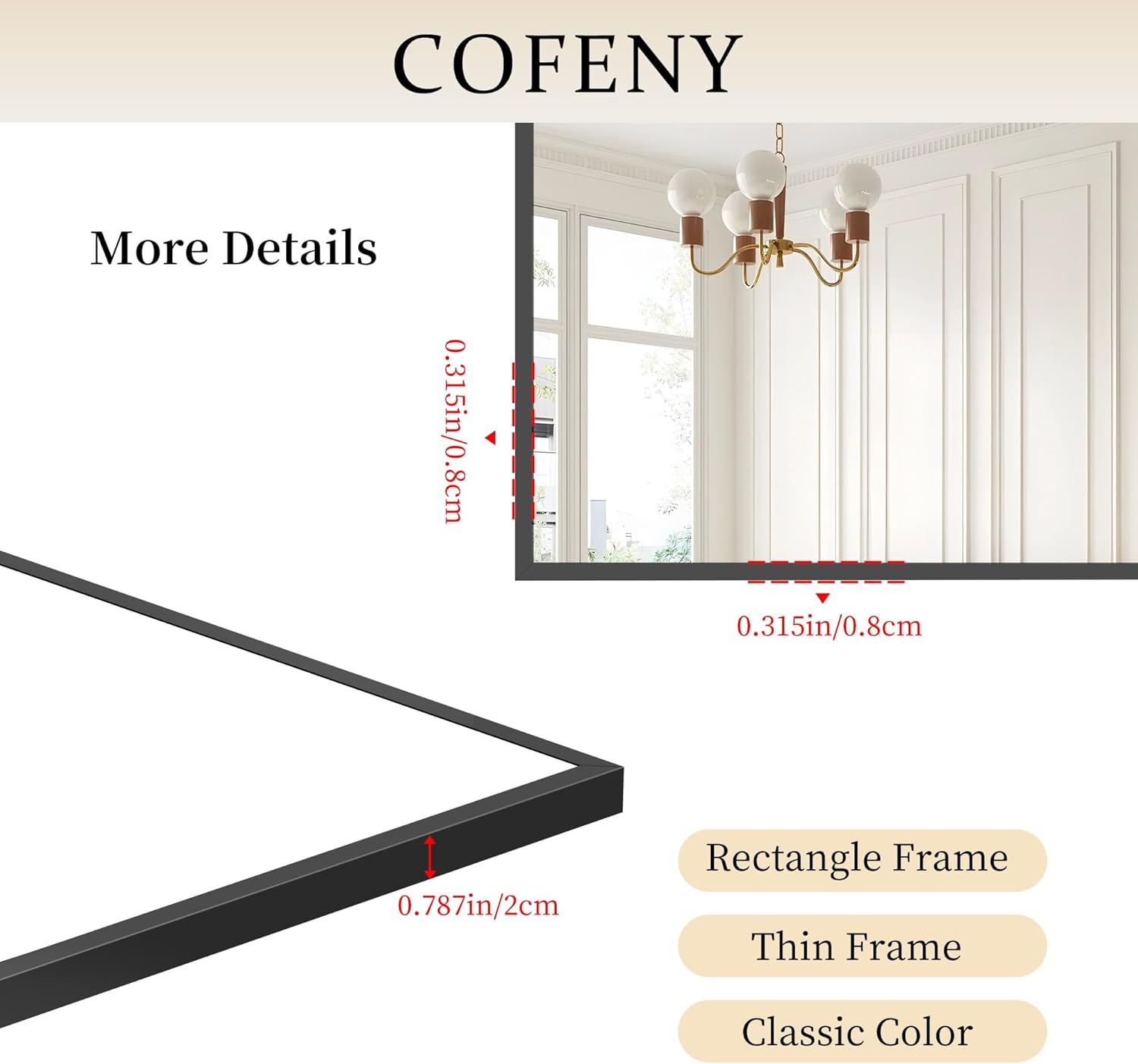 - HD MIRROR&NO DISTORION: COFENY 36X50 mirror is made of premium glass, unbreakable and the reflection is clear and natural,high definition and non distorion,which can give you the most realistic visual enjoymentmeet and long-lasting use need!