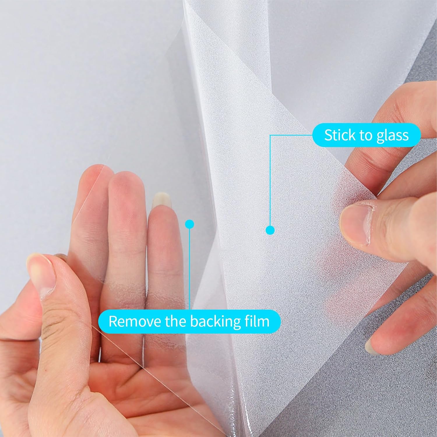 - Get the appearance of frosted glass with this non-adhesive decorative window film, easy do-it. It will be more easier to get out the bubbles by spray enough water before you install. Can be cut to most any sizes or shape you need