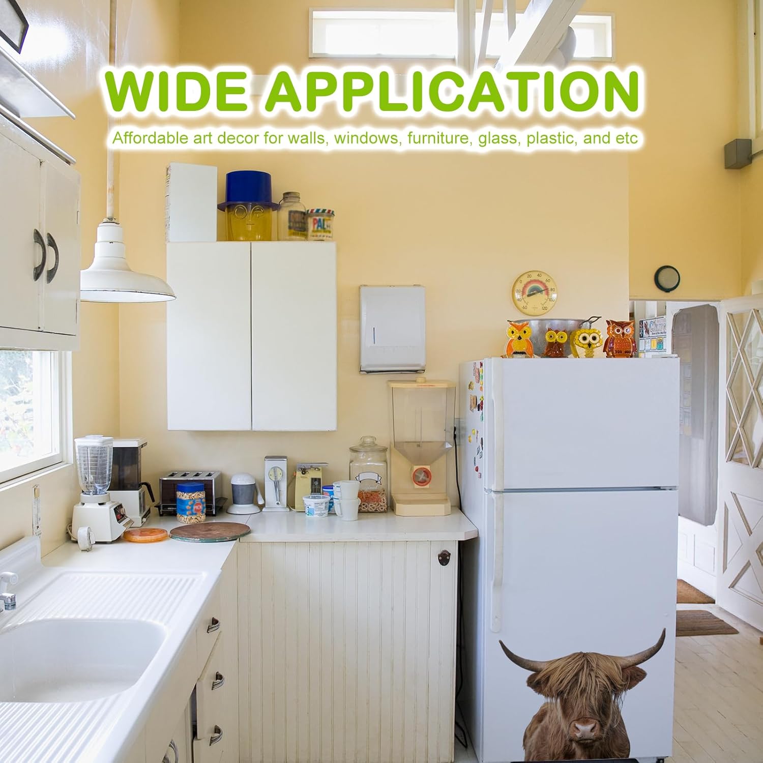 Highland Cow Wall Window Stickers Decor Scottish Cow Wall Decals Peel and Stick Funny Cow Wall Stickers Removable Cool Cow Farmhouse Kitchen Decoration Weird Gifts for Fiends Christmas