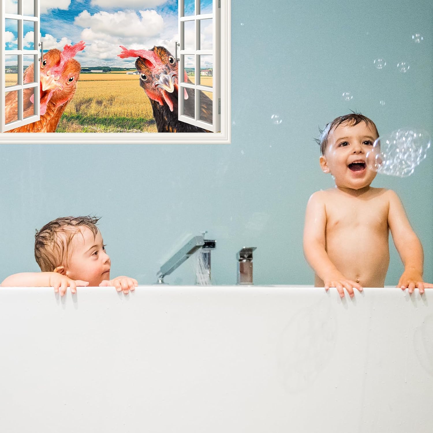 Funny Chicken Wall Stickers Peel and Stick - 2 Hens Head Looking Inside from Window - Cute Chicken Wall Decals Removable - Chicken Lover Gifts Wall Decor for Bedroom Farmhouse Kitchen Dorm