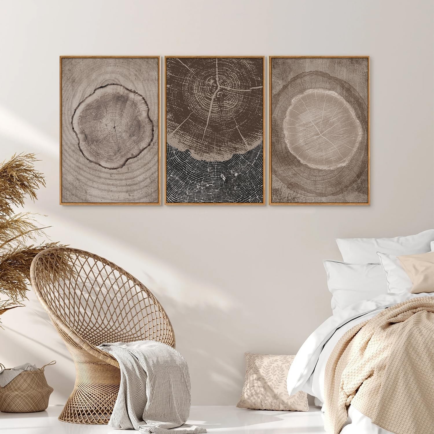 SIGNINART Beige Tree Ring Framed Canvas Wall Art Set, Abstract Black and White Rustic Wood Wall Decor, Neutral Wood Stump Artwork, Modern Art Prints for Bedroom Living Room Office 16"x24"x3
